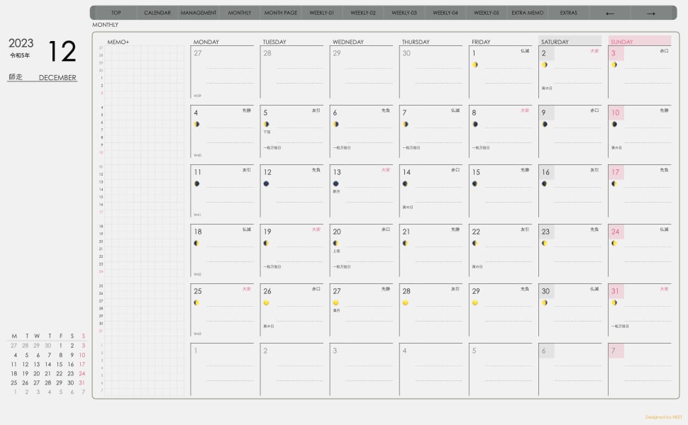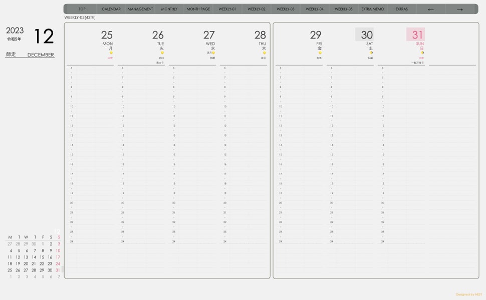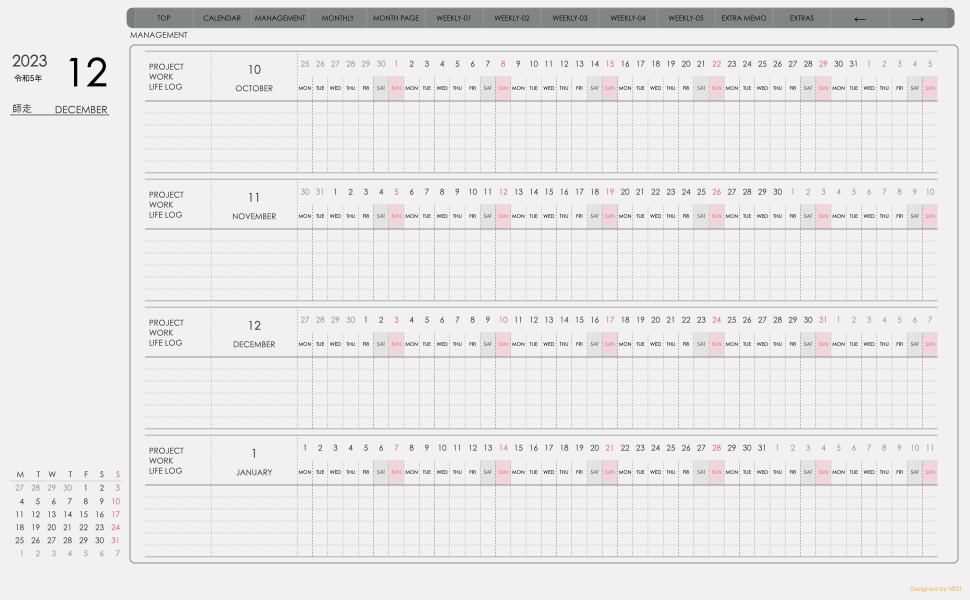 **(week-verticalシリーズ)月曜日始まり2023.12月版**が登場!