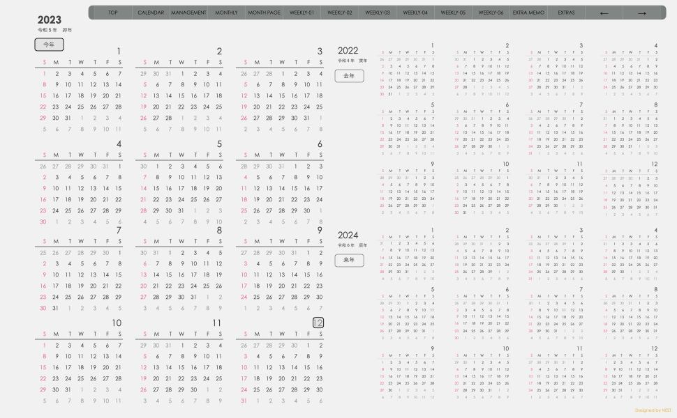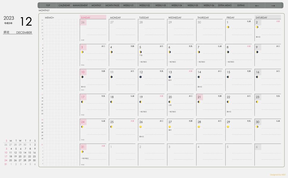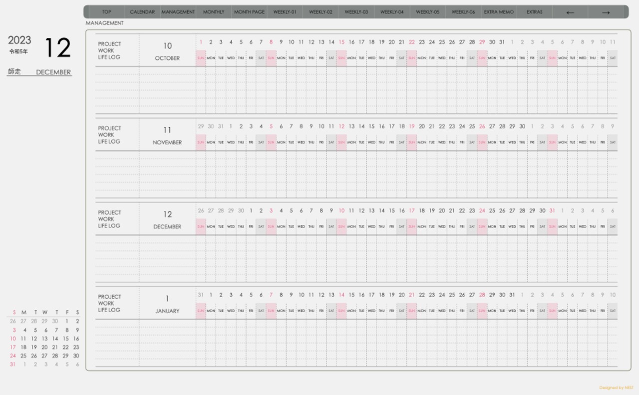 **(week-verticalシリーズ)日曜日始まり2023.12月版**が登場!