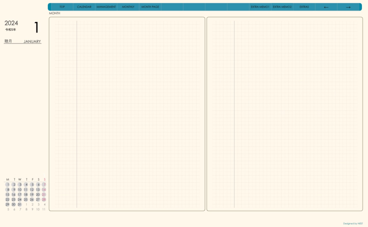 毎月の予定やスケジュールを手書きで記入するというアナログ感覚も、このデジタルプランナーならではの楽しみ方です。使いやすいインターフェースで編集も簡単に行え、1ヶ月単位の予定を整理・管理するのに便利です。