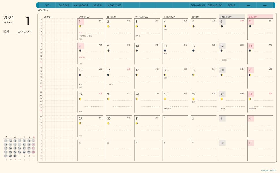 **dayシリーズ日曜日始まり2024年01月版**の登場!
