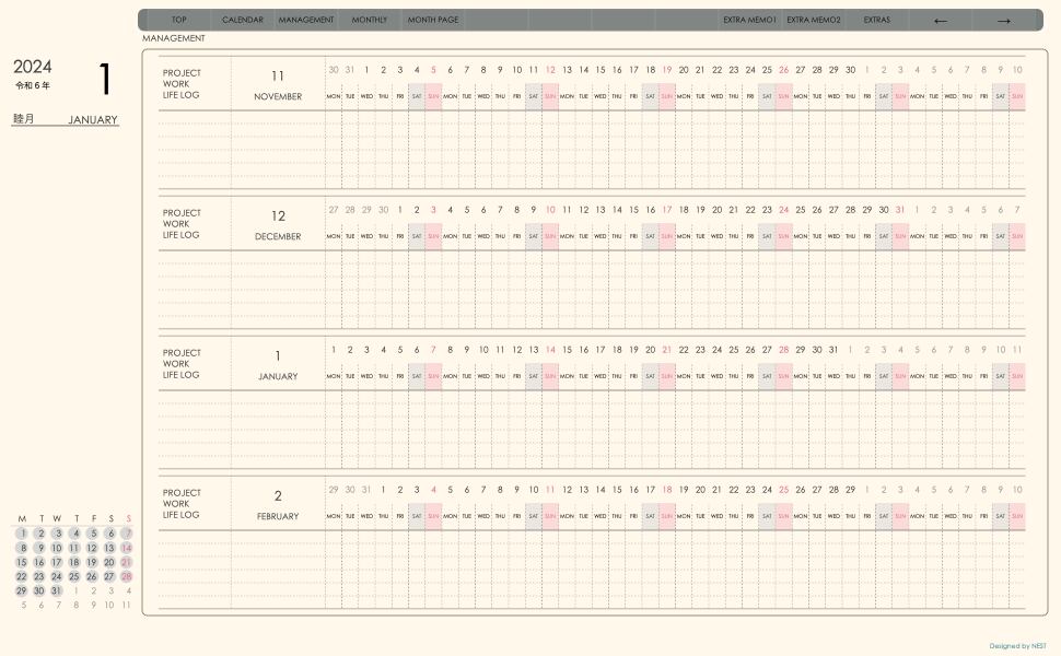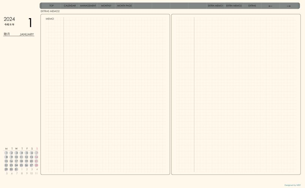 **手帖(dayシリーズ)日曜日始まり2024.01月版**