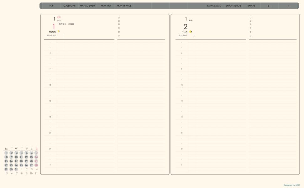 毎月の予定やスケジュールを手書きで記入するというアナログ感覚も、このデジタルプランナーならではの楽しみ方です。使いやすいインターフェースで編集も簡単に行え、1ヶ月単位の予定を整理・管理するのに便利です。