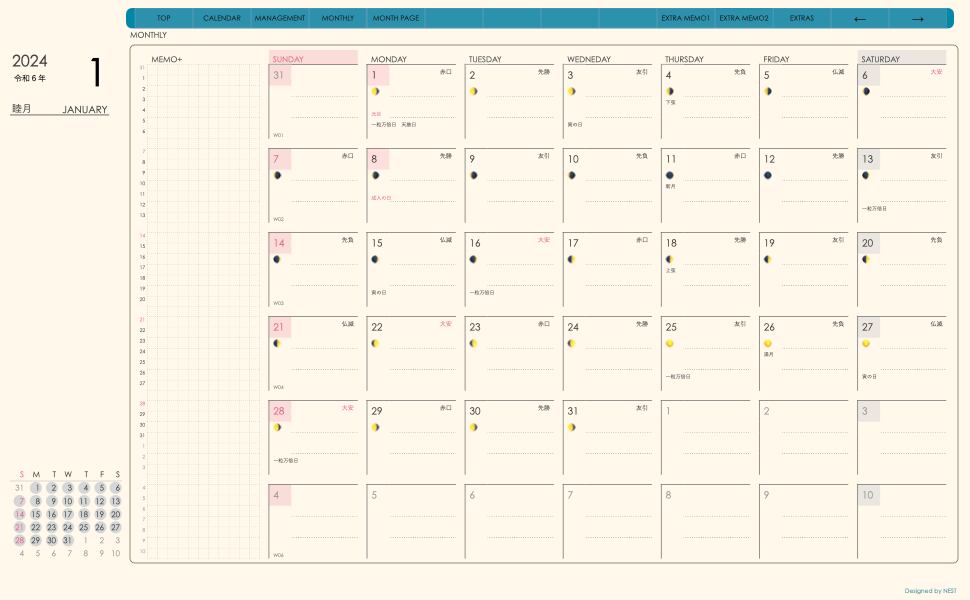 **dayシリーズ日曜日始まり2024年01月版**の登場!