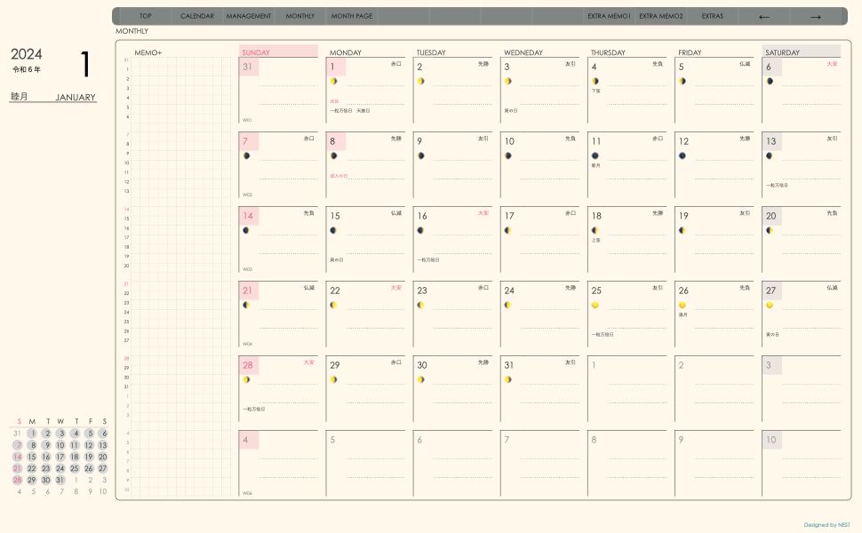 **dayシリーズ日曜日始まり2024年01月版**の登場!