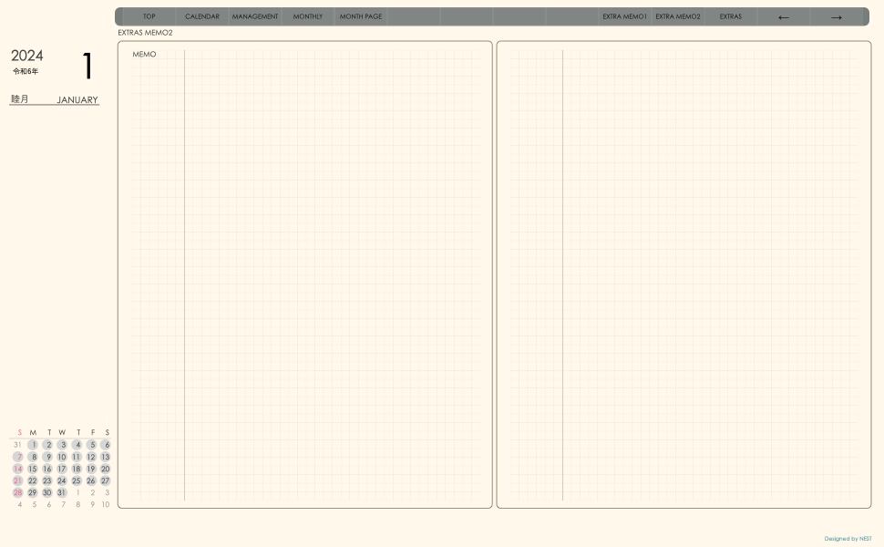 毎月の予定やスケジュールを手書きで記入するというアナログ感覚も、このデジタルプランナーならではの楽しみ方です。使いやすいインターフェースで編集も簡単に行え、1ヶ月単位の予定を整理・管理するのに便利です。