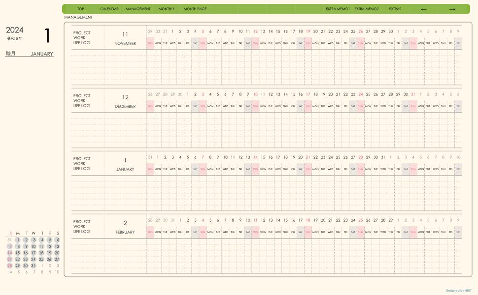 **手帖(dayシリーズ)日曜日始まり2024.01月版**