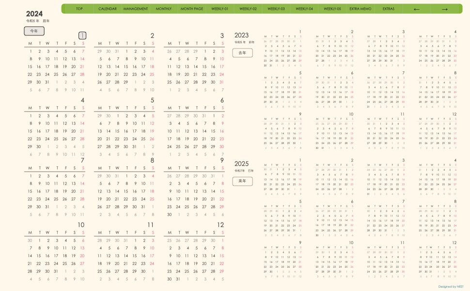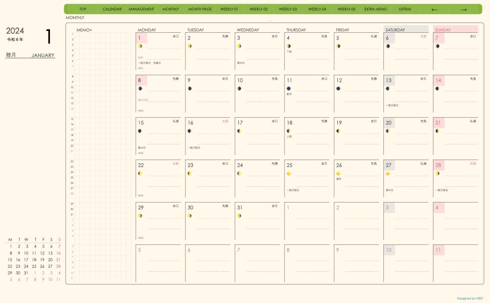 **(week-leftシリーズ)日曜日始まり2024.01月版**の登場!