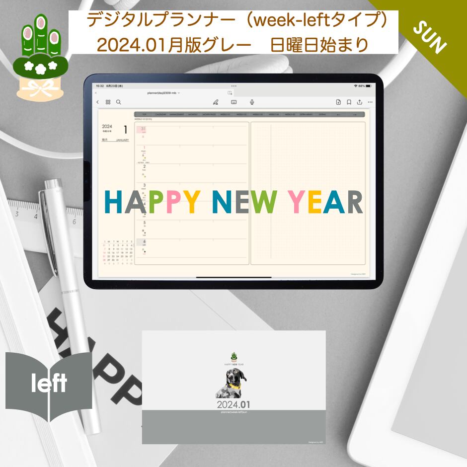 **(week-leftシリーズ)日曜日始まり2024.01月版**の登場!