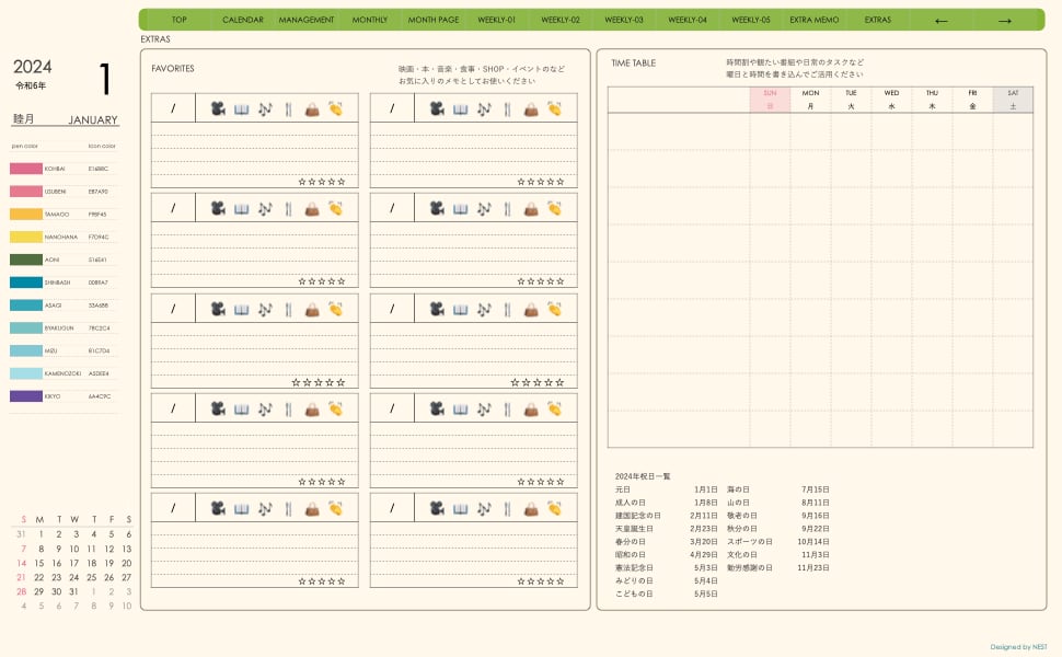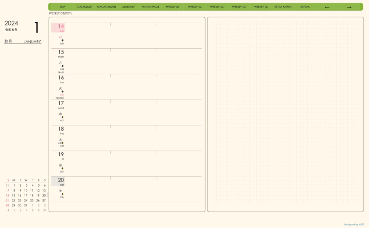 予定の把握とメモの両方が使えるレイアウトとなっています。