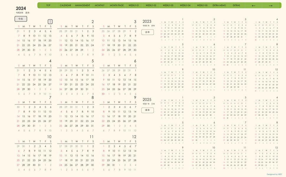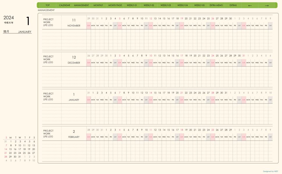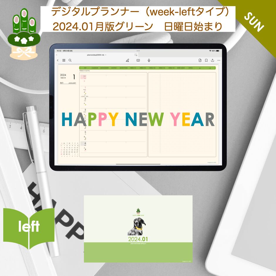 **(week-leftシリーズ)日曜日始まり2024.01月版**の登場!