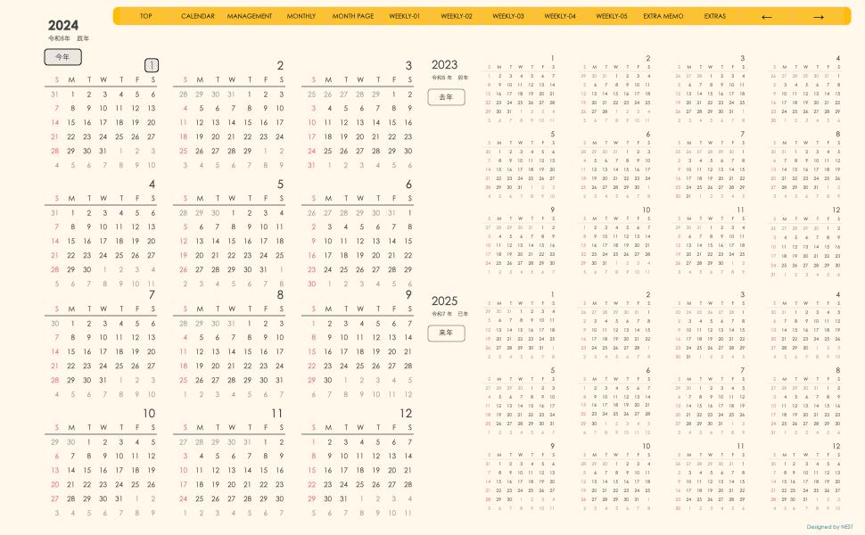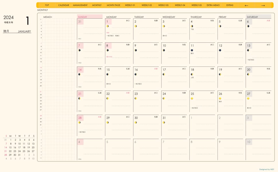 **(week-leftシリーズ)日曜日始まり2024.01月版**の登場!