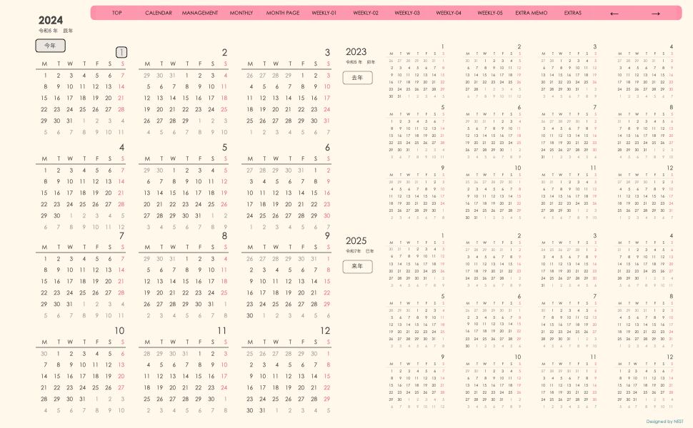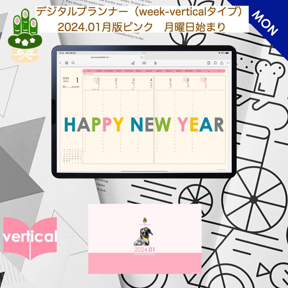 **(week-verticalシリーズ)日曜日始まり2024.01月版**が登場!