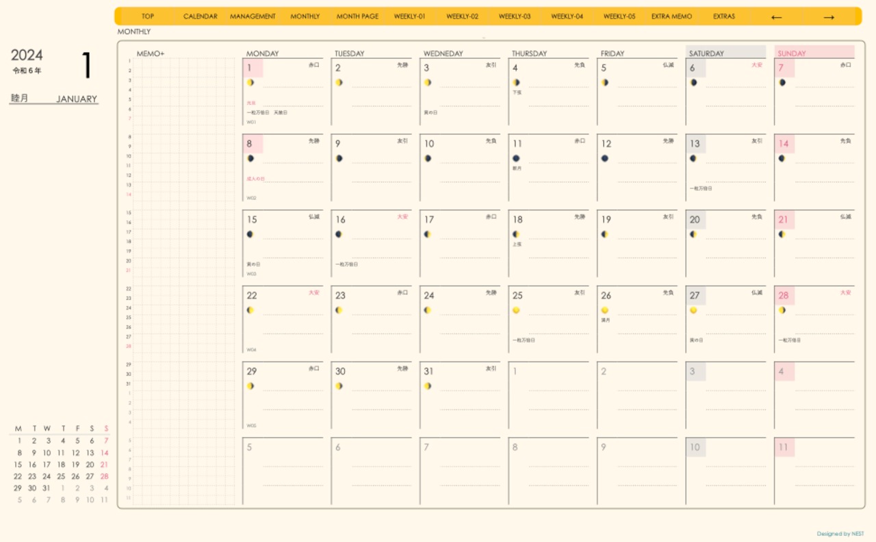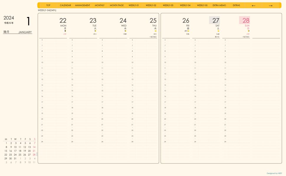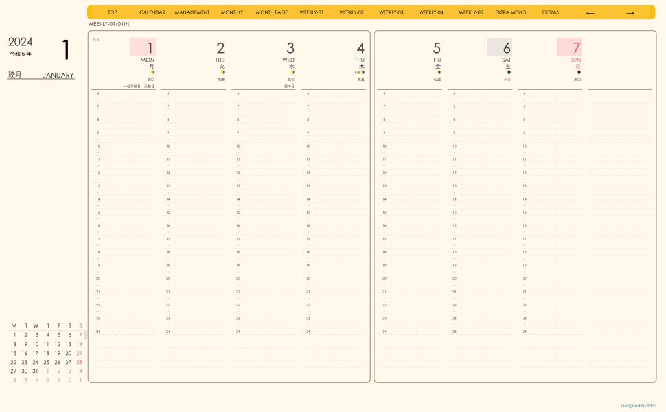 **(week-verticalシリーズ)日曜日始まり2024.01月版**が登場!