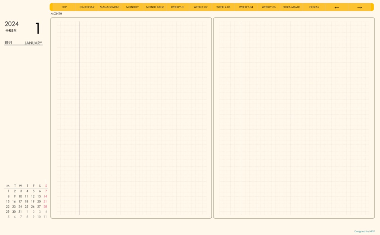 毎月の予定やスケジュールを手書きで記入するというアナログ感覚も、このデジタルプランナーならではの楽しみ方です。使いやすいインターフェースで編集も簡単に行え、1ヶ月単位の予定を整理・管理するのに便利です。
