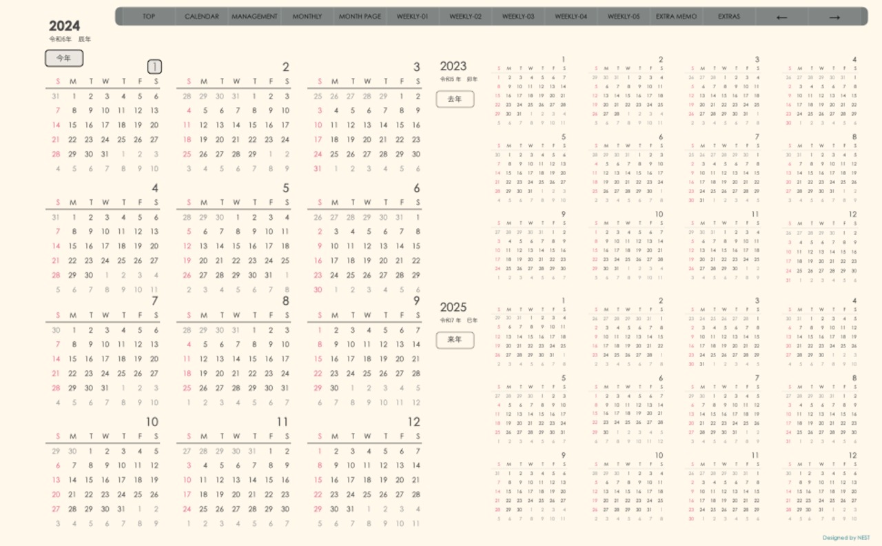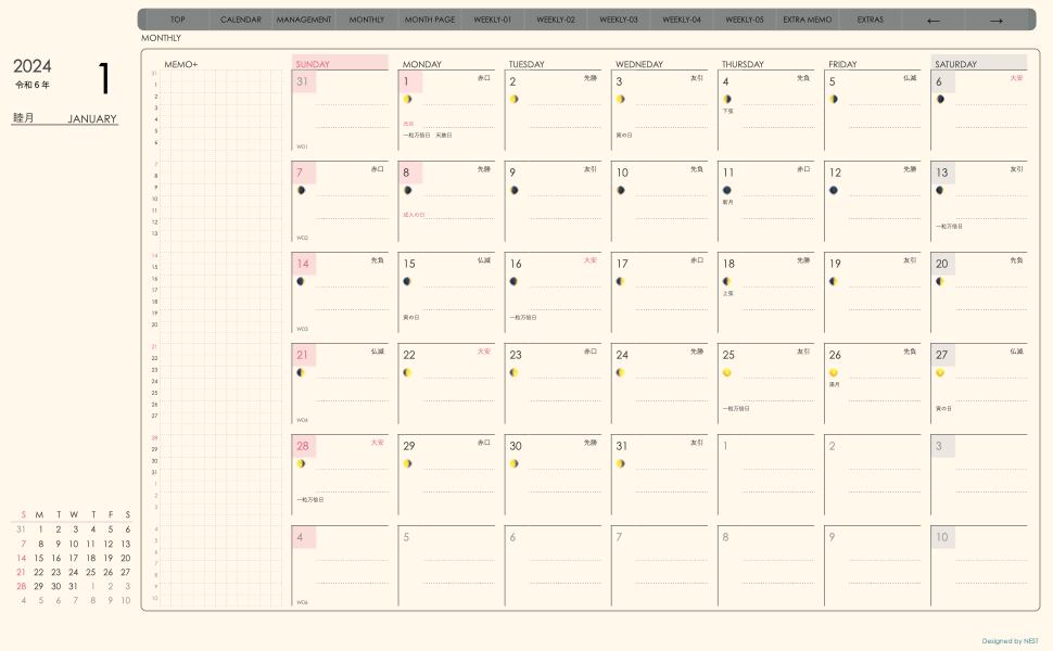**(week-verticalシリーズ)日曜日始まり2024.01月版**が登場!