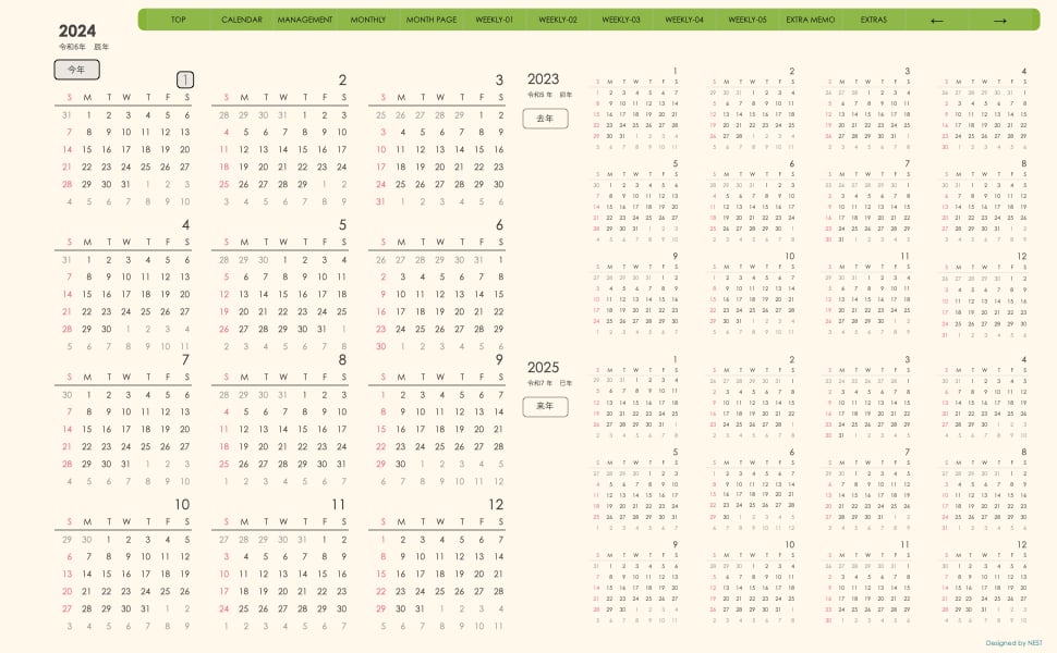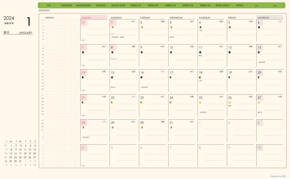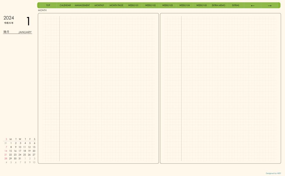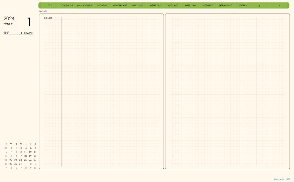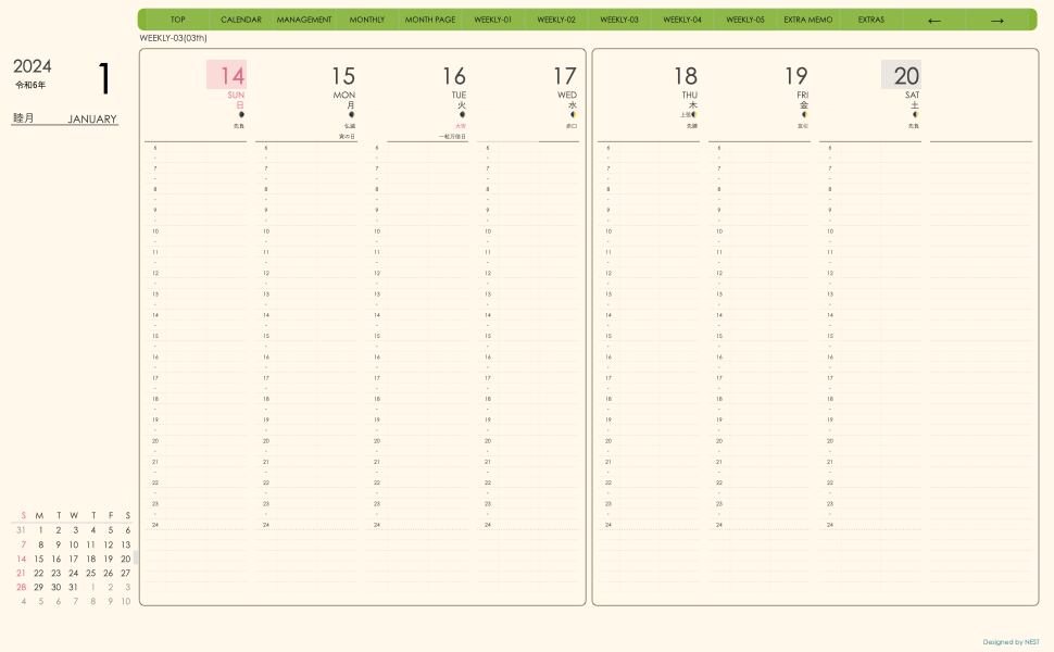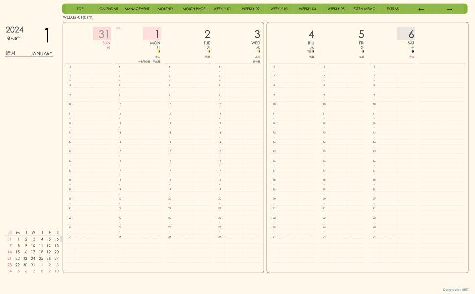 **(week-verticalシリーズ)日曜日始まり2024.01月版**が登場!