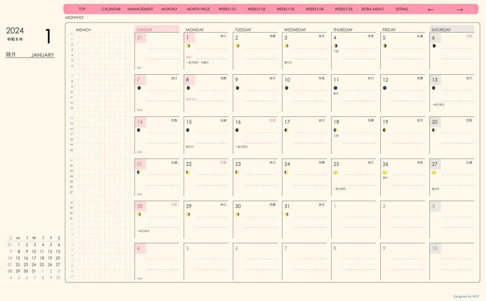 **(week-verticalシリーズ)日曜日始まり2024.01月版**が登場!