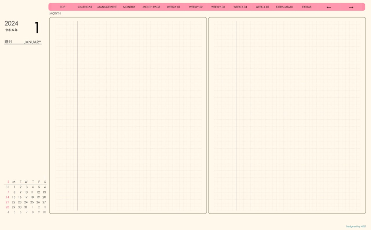 毎月の予定やスケジュールを手書きで記入するというアナログ感覚も、このデジタルプランナーならではの楽しみ方です。使いやすいインターフェースで編集も簡単に行え、1ヶ月単位の予定を整理・管理するのに便利です。