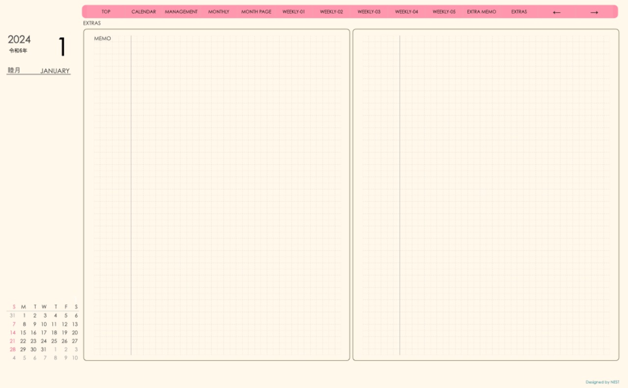 予定の把握と その日のメモの両方が使えるレイアウトとなっています