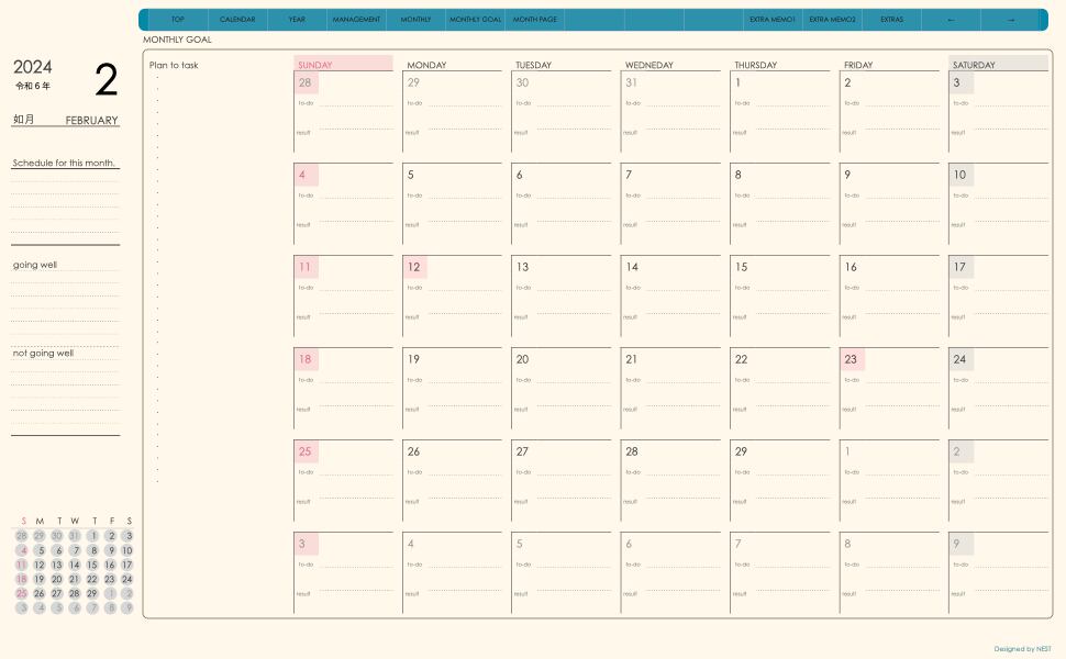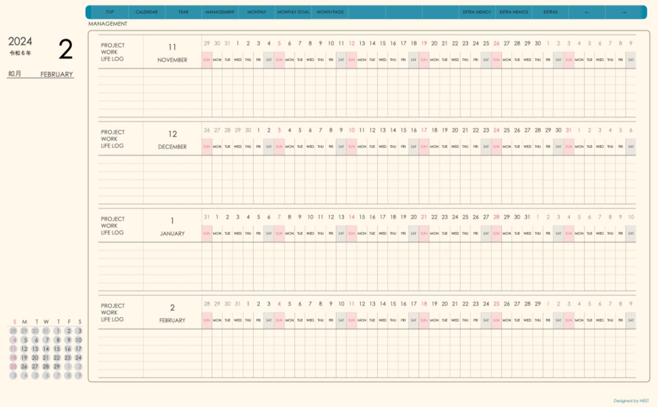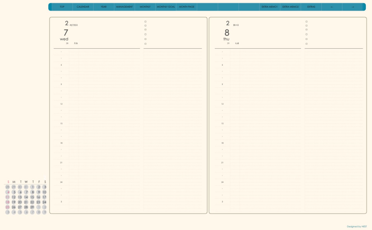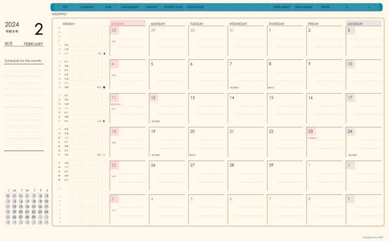 **手帖(dayシリーズ)日曜日始まり2024.02月版**