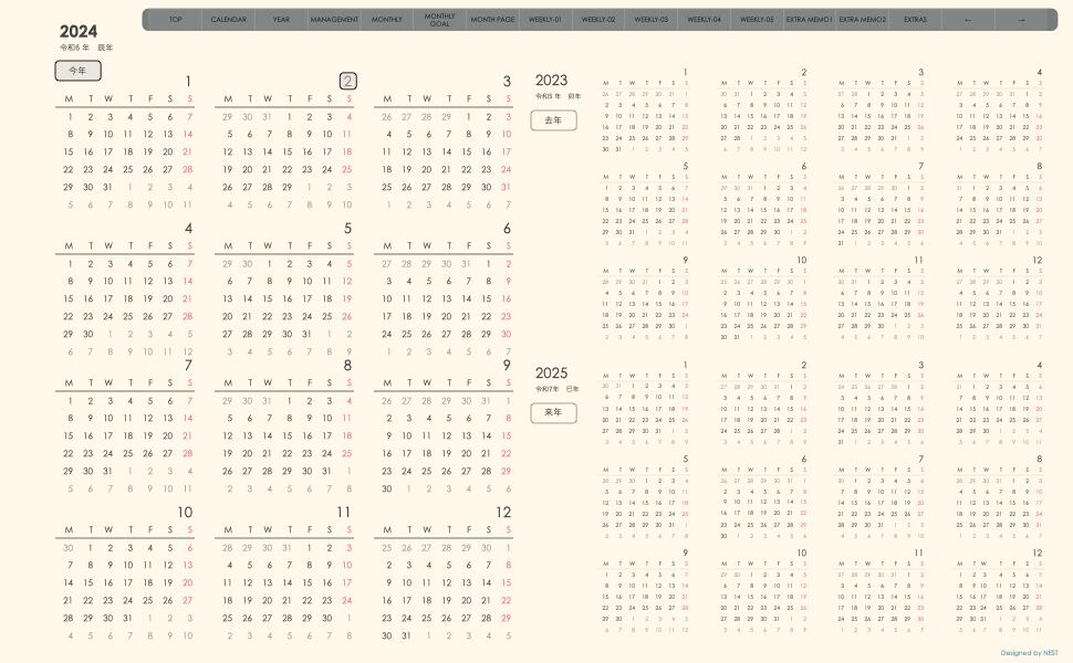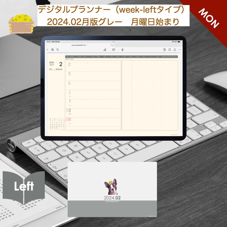 **(week-leftシリーズ)月曜日始まり2024.02月版**の登場!
