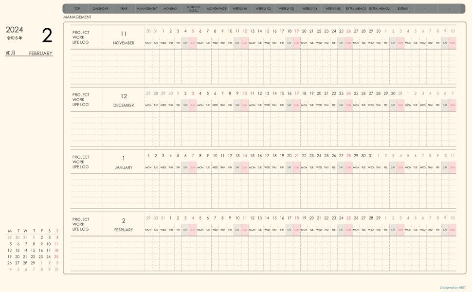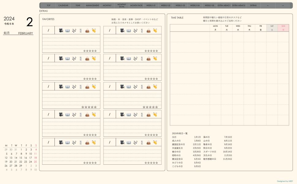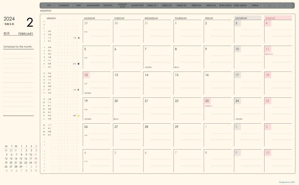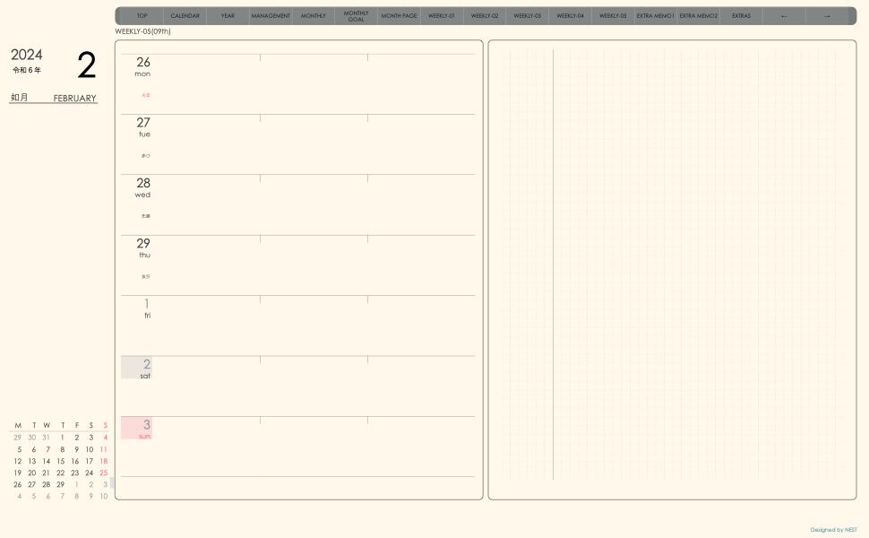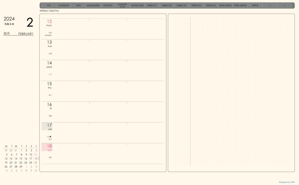 **手帖(week-leftシリーズ)月曜日始まり2024.02月版**