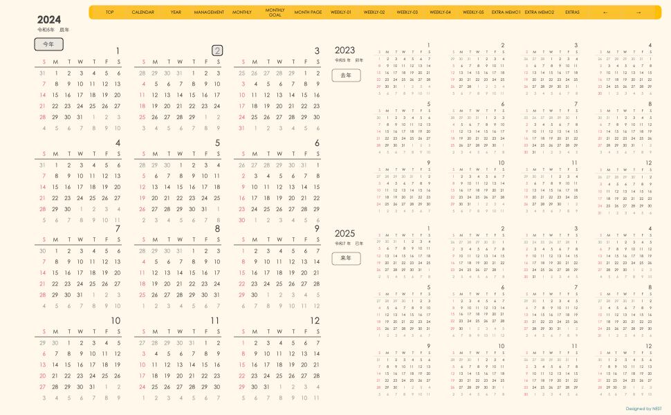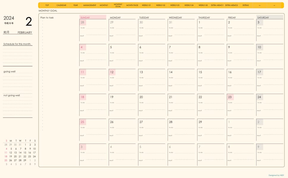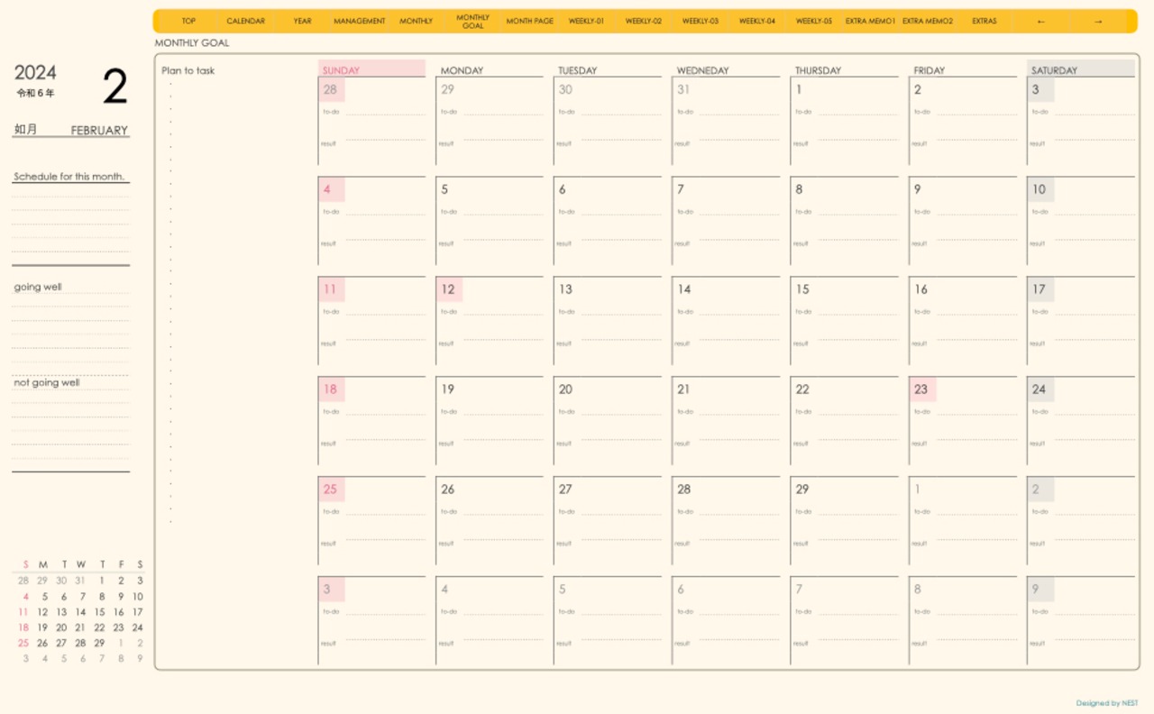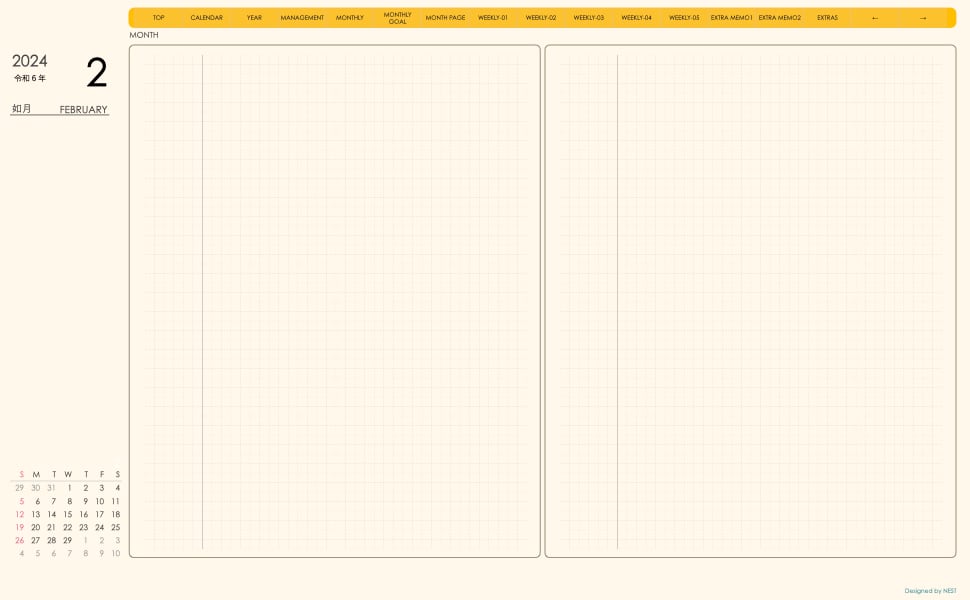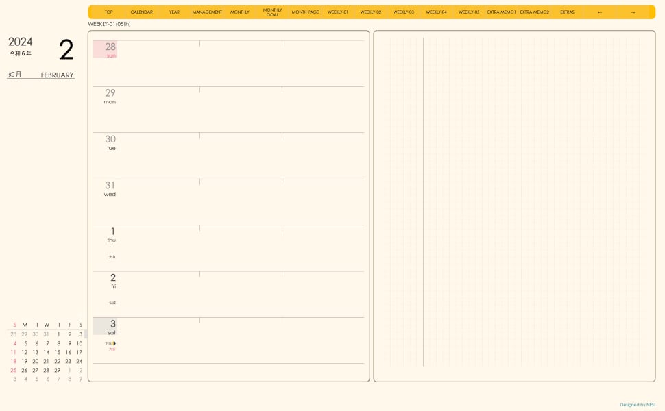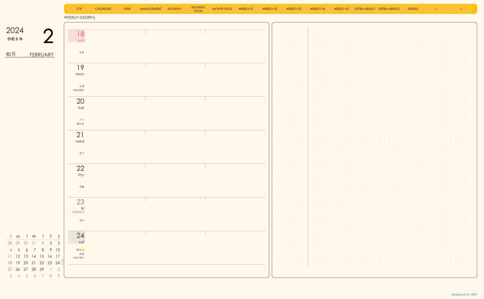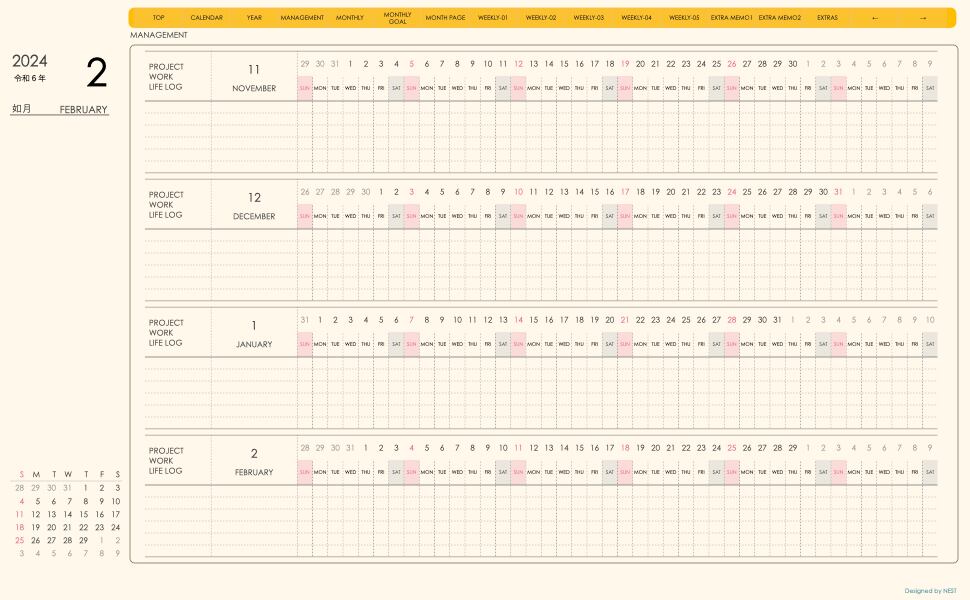**手帖(week-leftシリーズ)日曜日始まり2024.02月版**