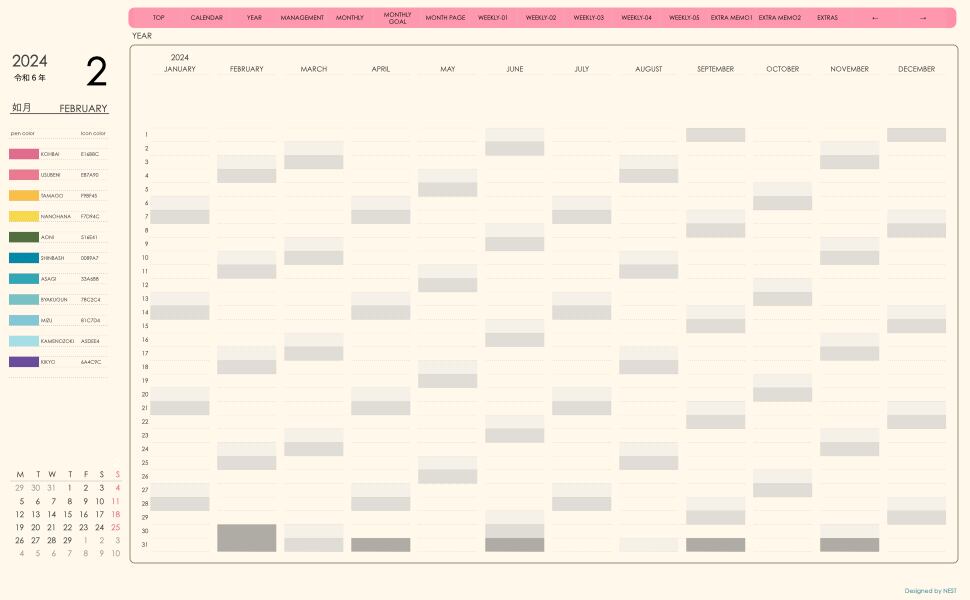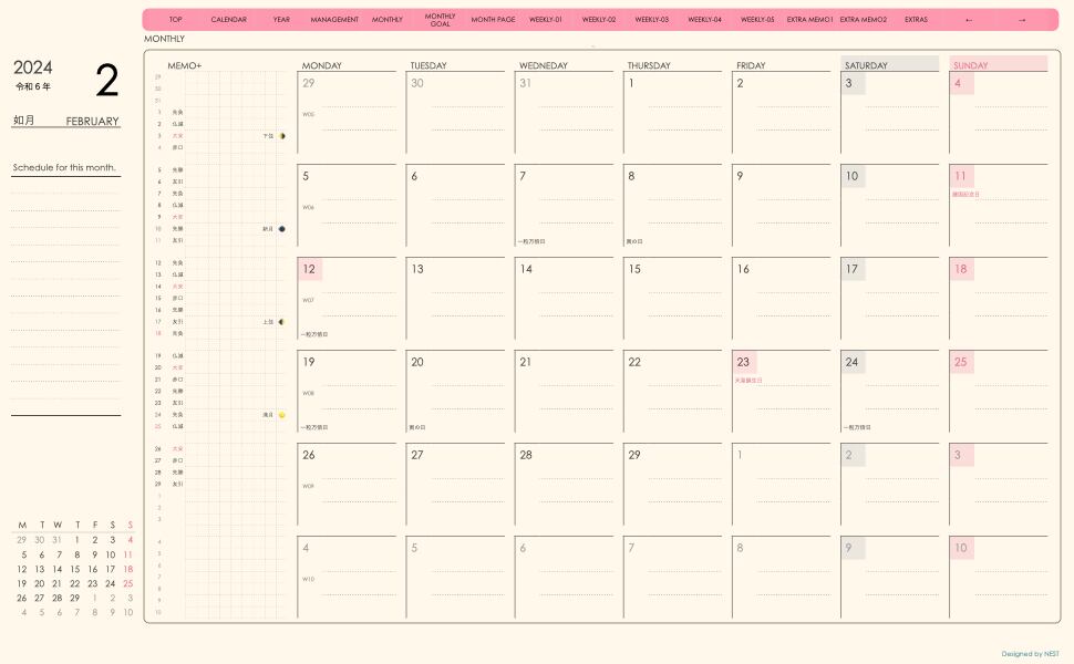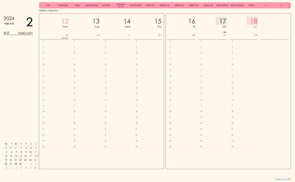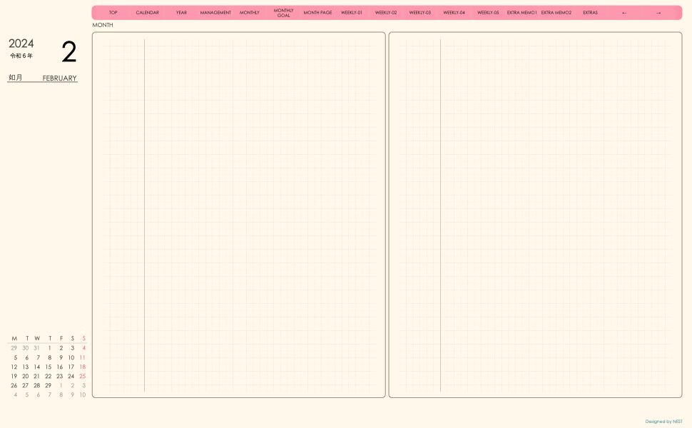 **手帖(week-verticalシリーズ)月曜日始まり2024.02月版**