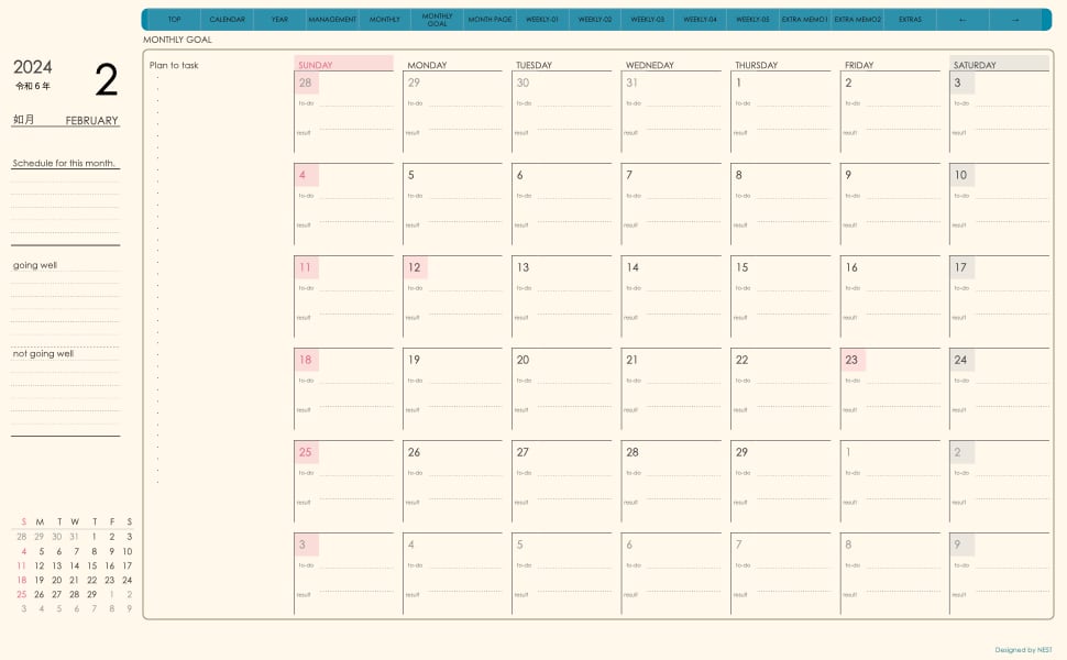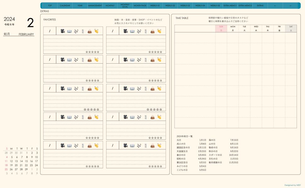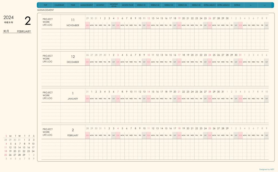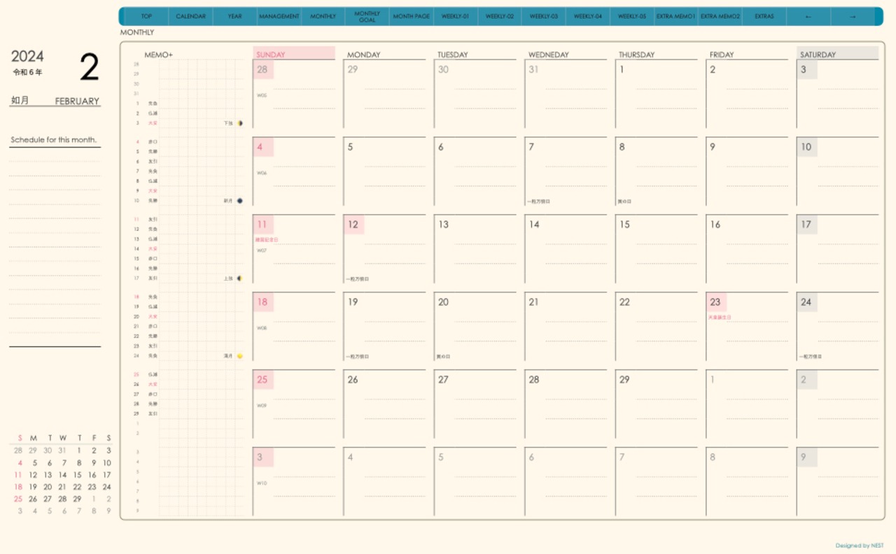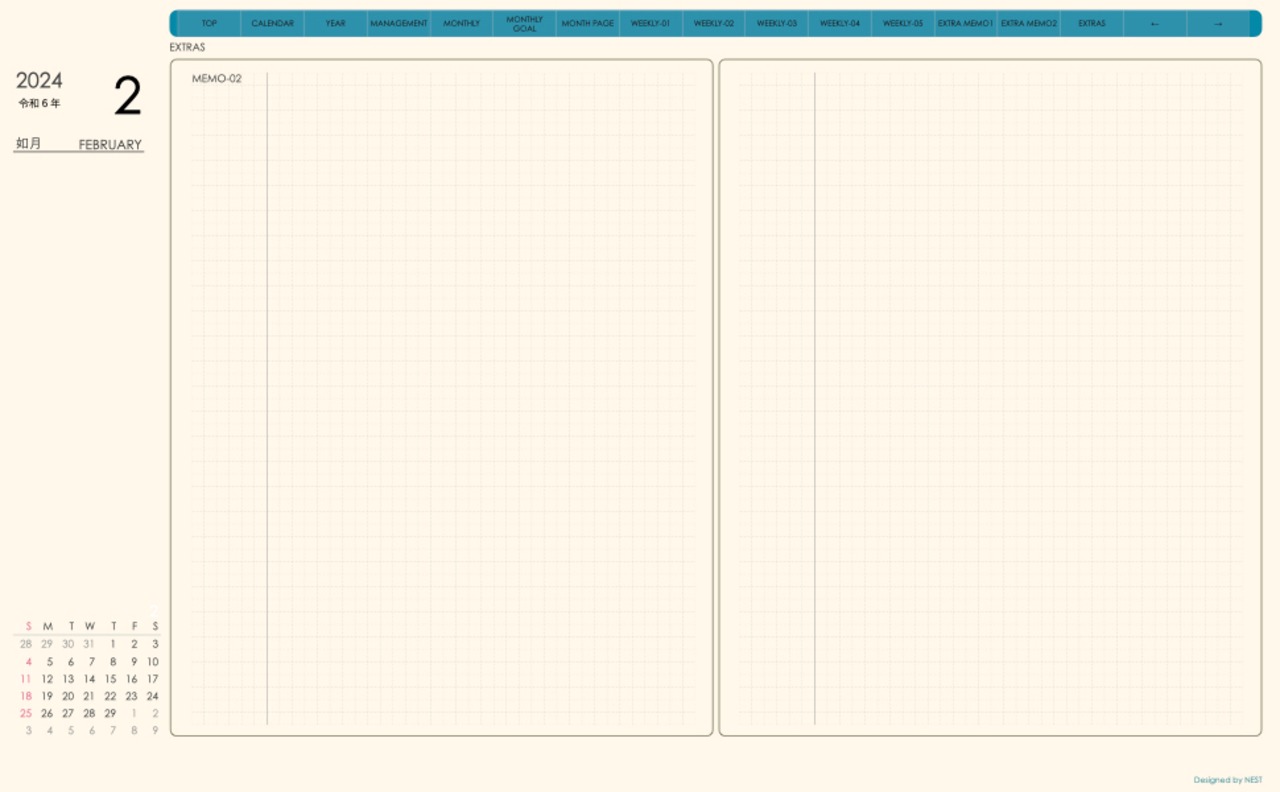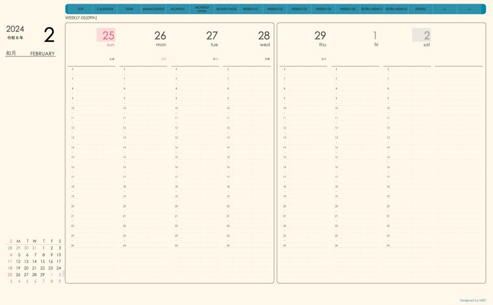 **手帖(week-verticalシリーズ)日曜日始まり2024.02月版**
