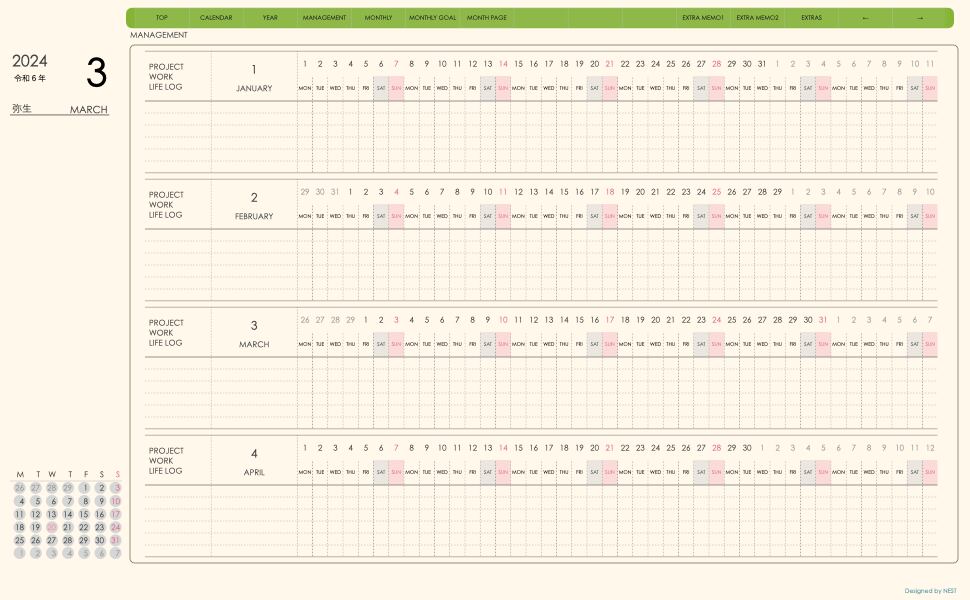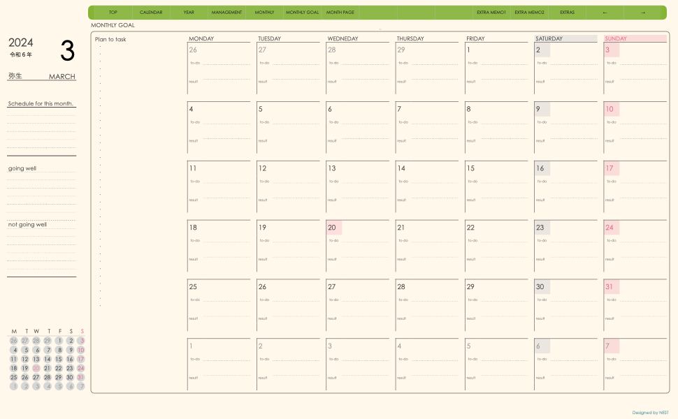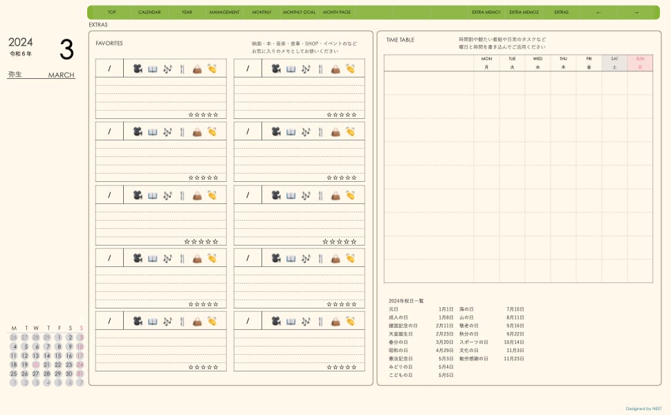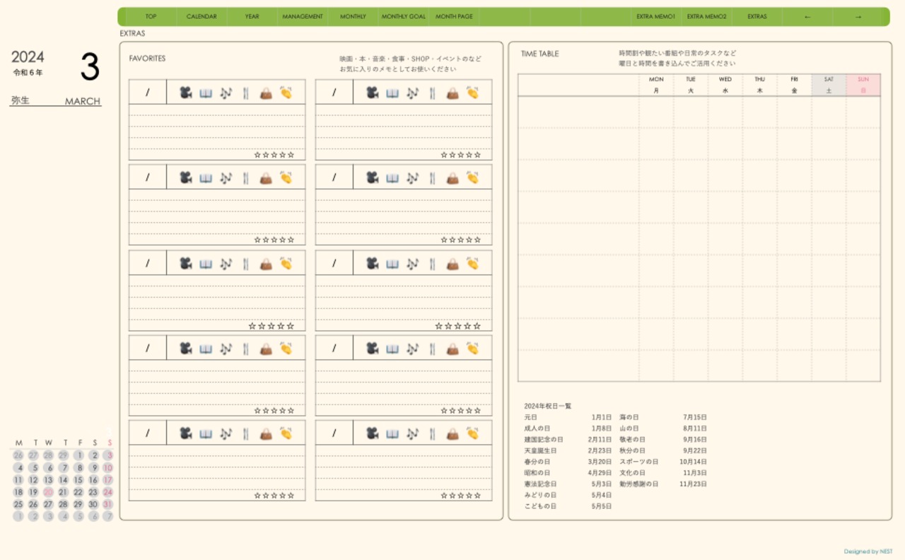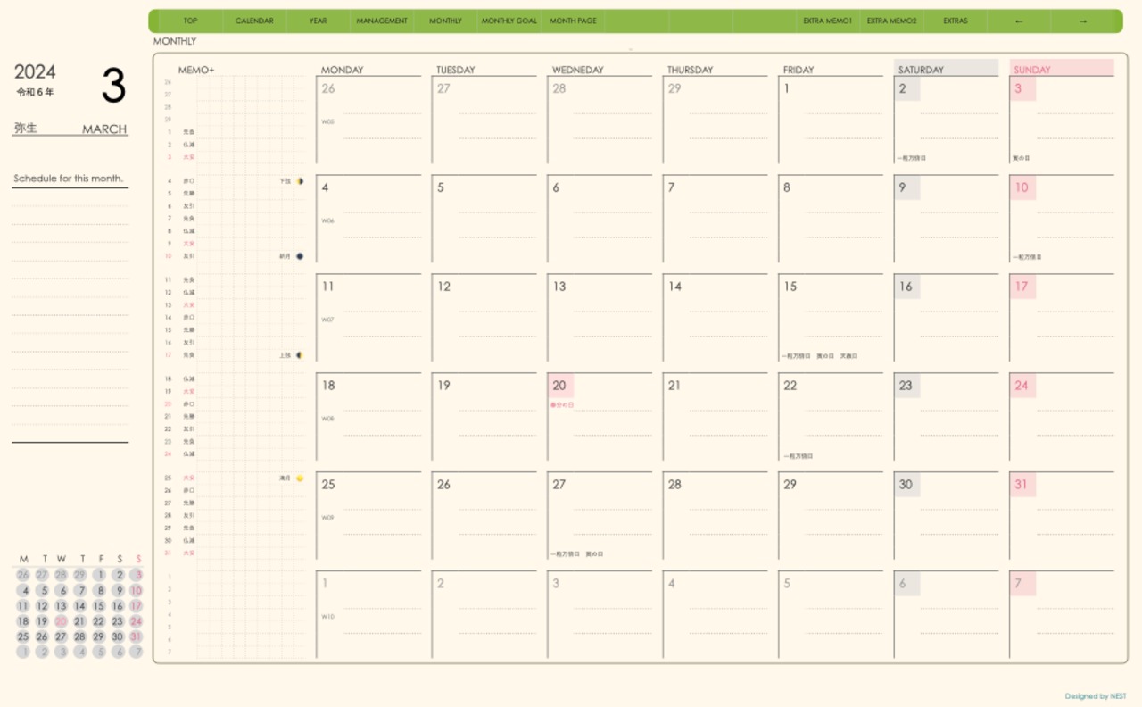 ・日本の祝日を表記(ミニカレンダーにも表記 **3月版から**)
