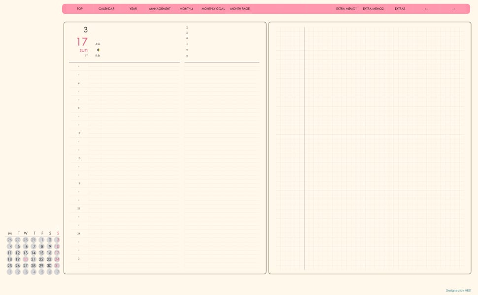 メモスペースを用意、 その週の出来事だったり 仕事のまとめだったり