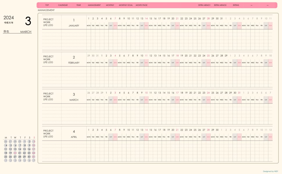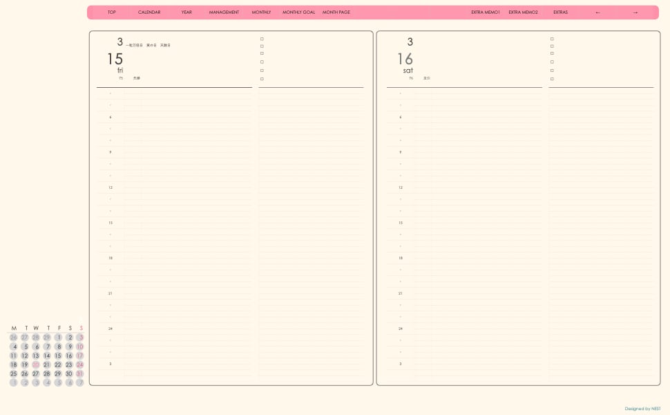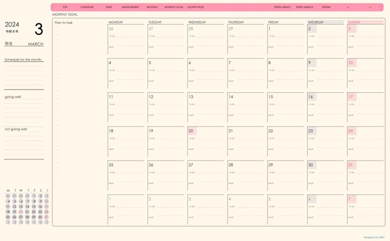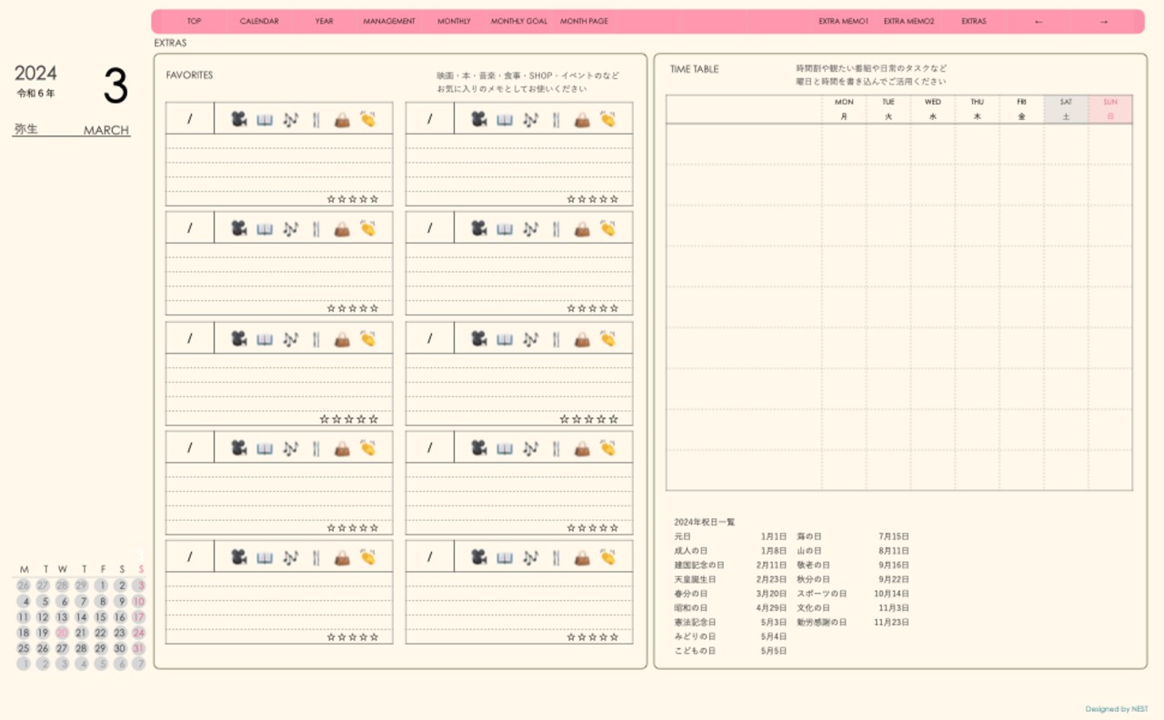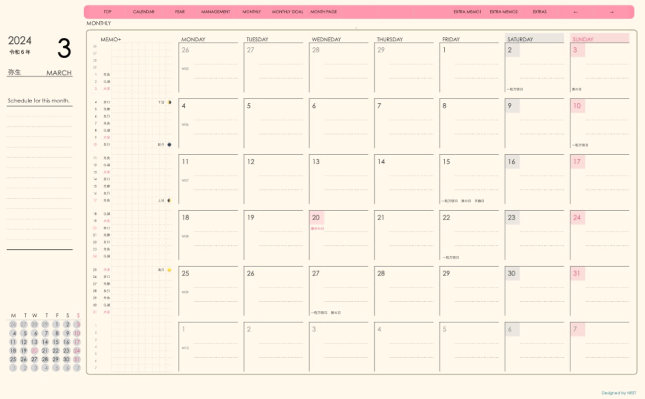 ・日本の祝日を表記(ミニカレンダーにも表記 **3月版から**)