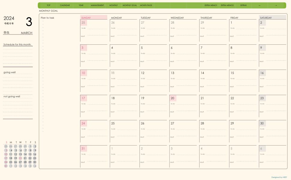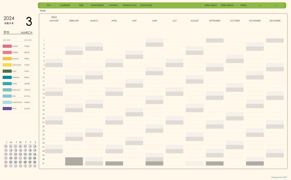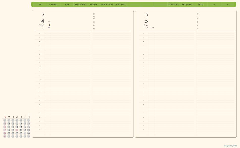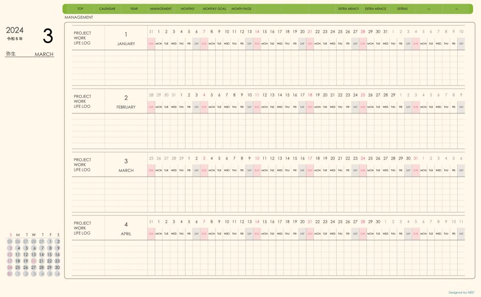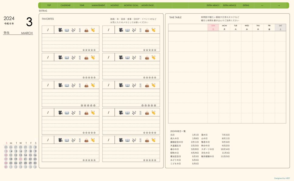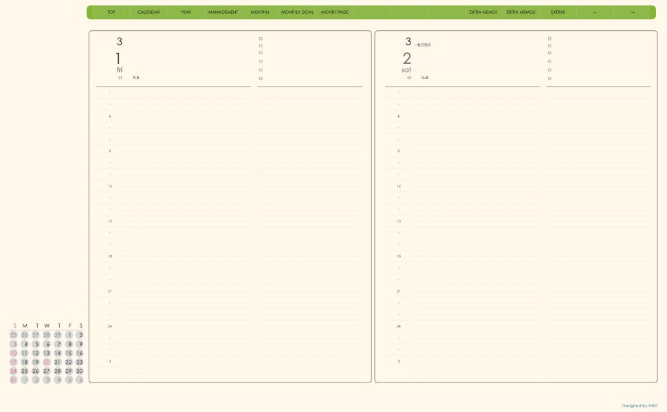 ・日本の祝日を表記(ミニカレンダーにも表記 **3月版から**)