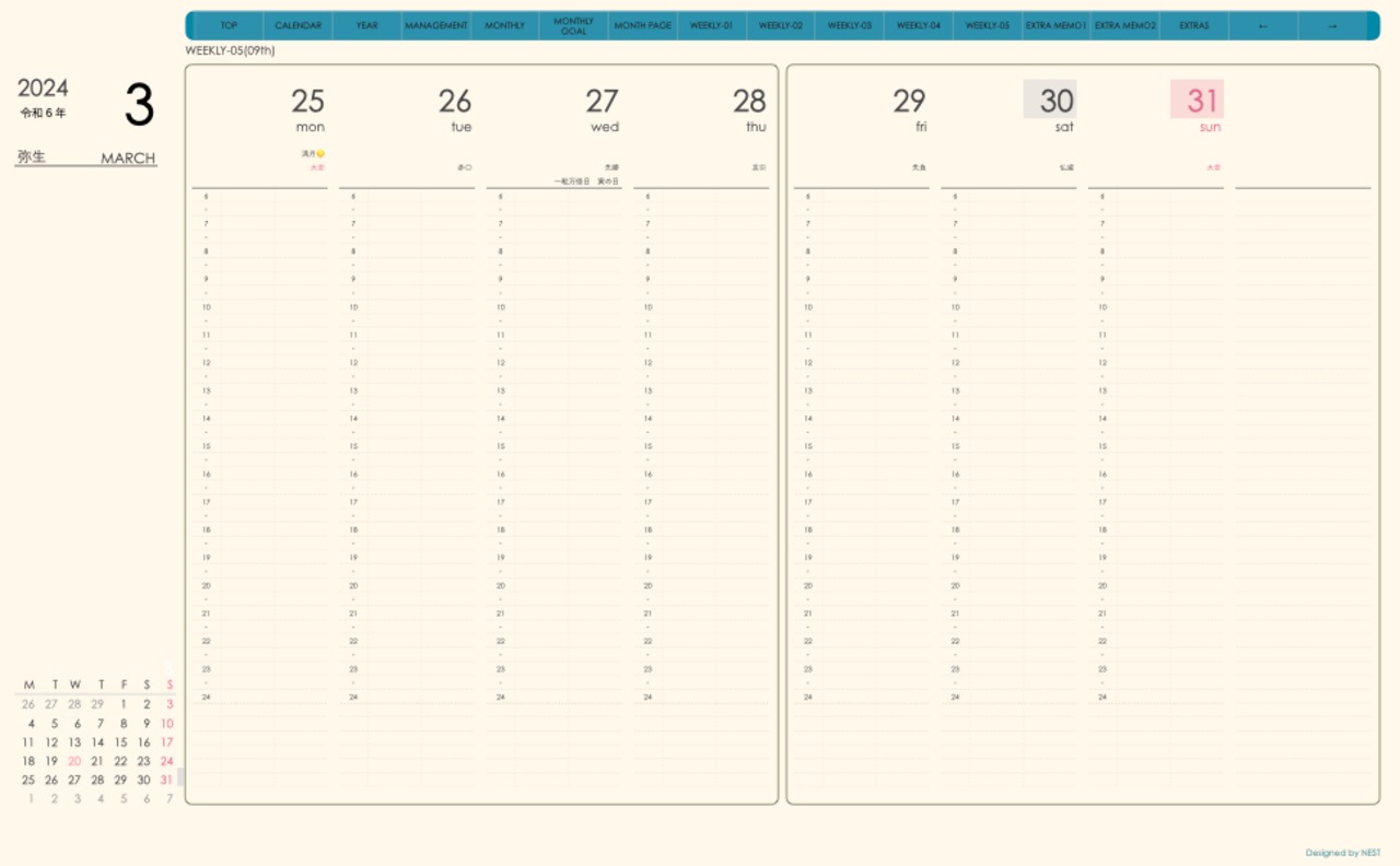 **(week-verticalシリーズ)月曜日始まり2024.03月版**が登場!