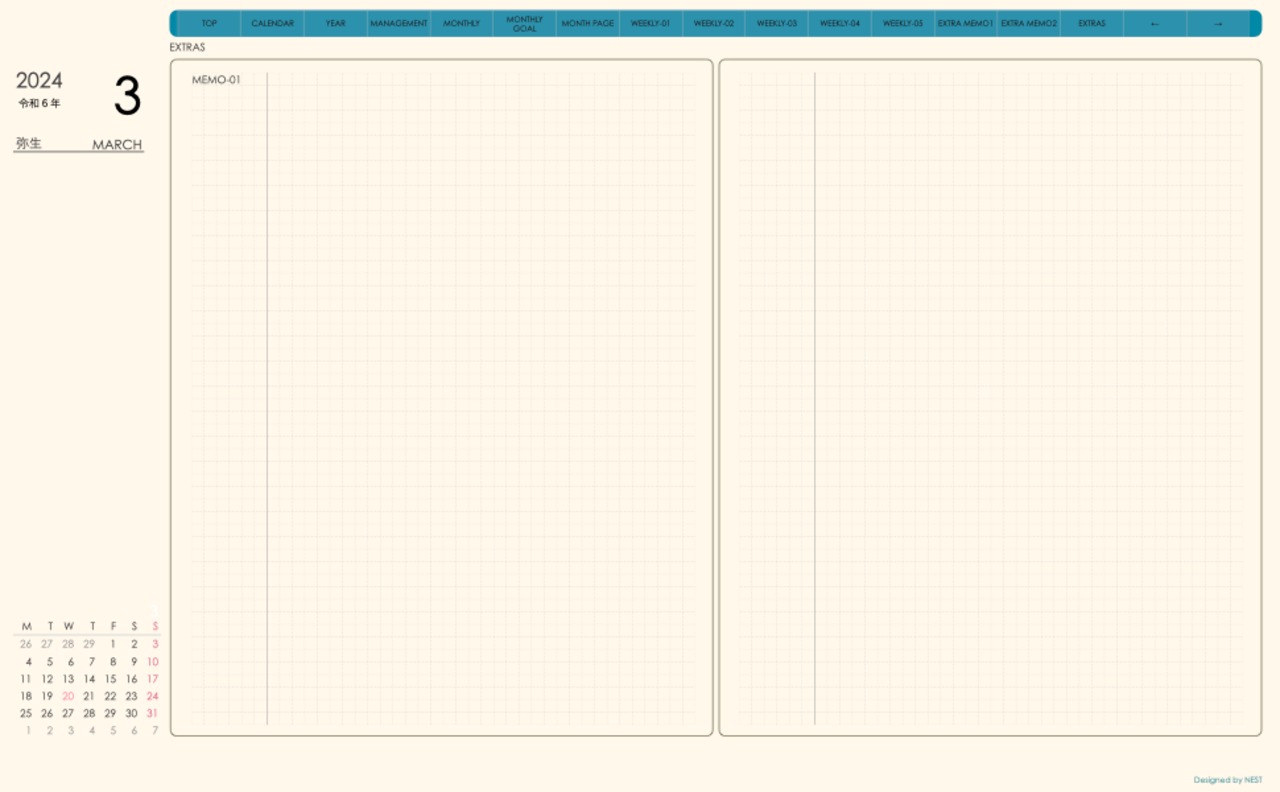 予定の把握と その日のメモの両方が使えるレイアウトとなっていて