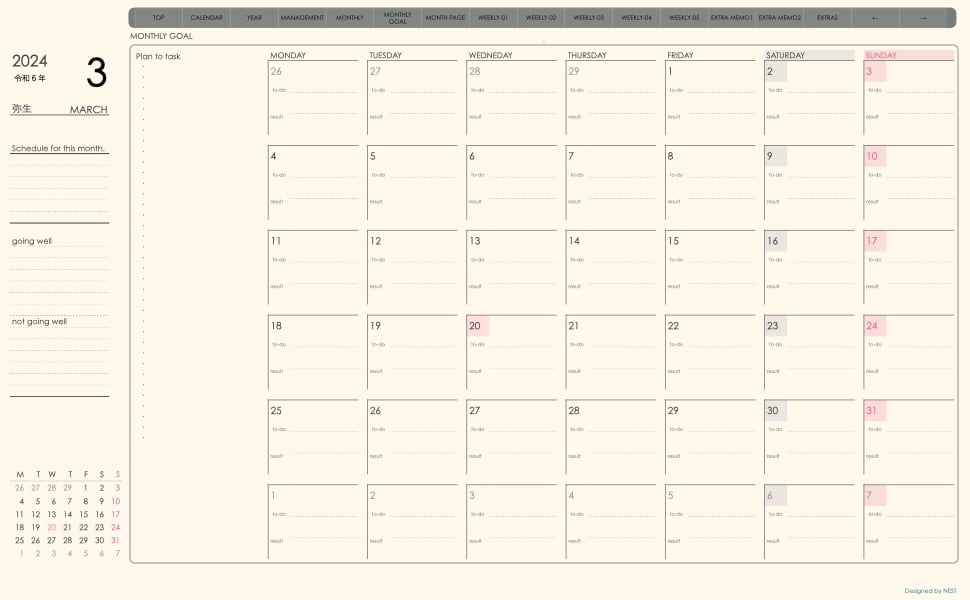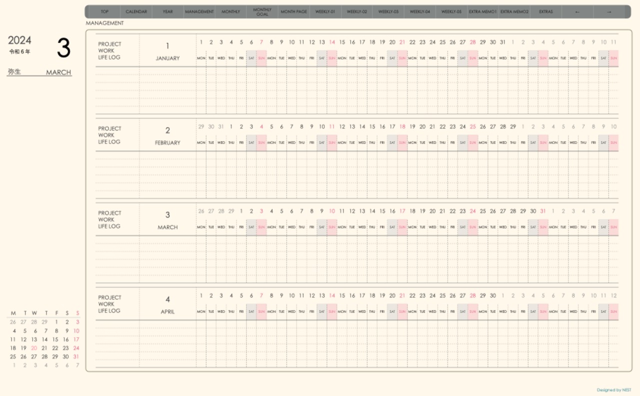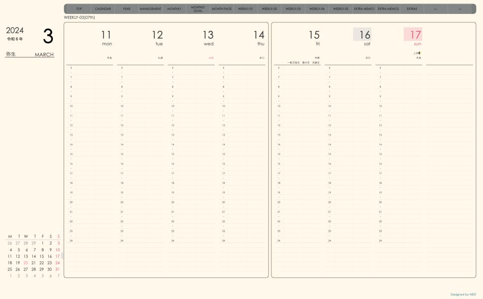 **(week-verticalシリーズ)月曜日始まり2024.03月版**が登場!