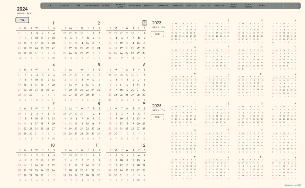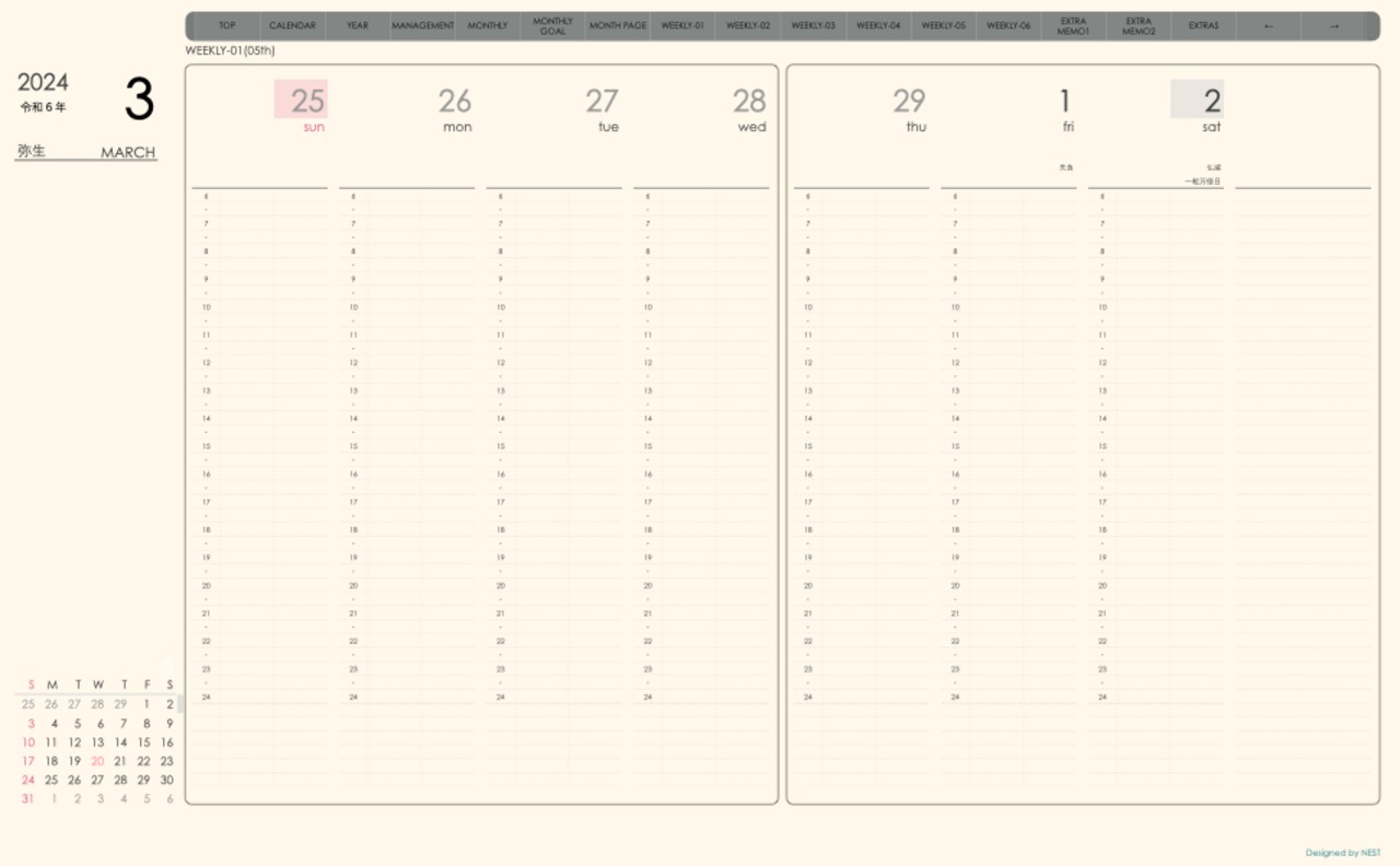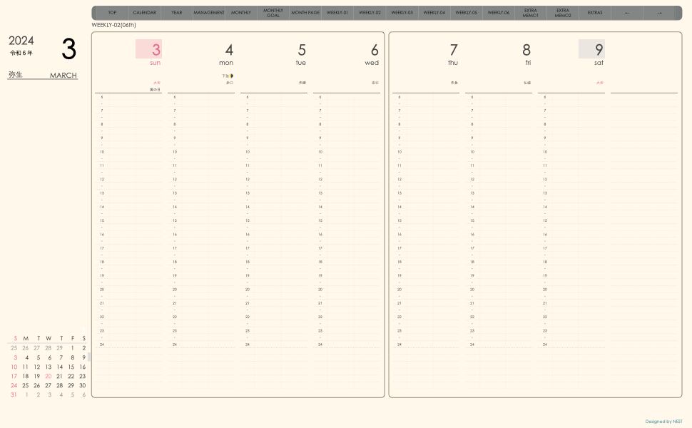 **(week-verticalシリーズ)日曜日始まり2024.03月版**が登場!