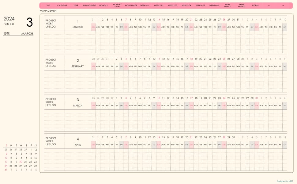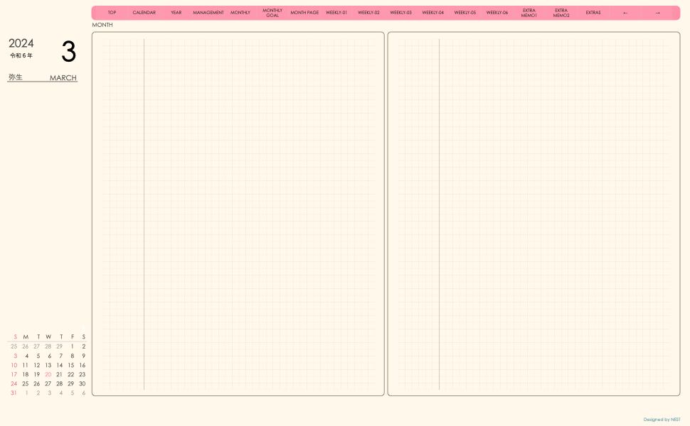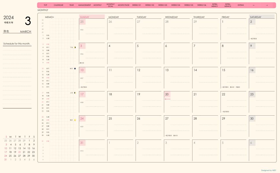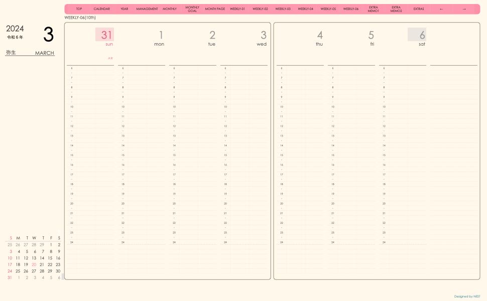 **(week-verticalシリーズ)日曜日始まり2024.03月版**が登場!