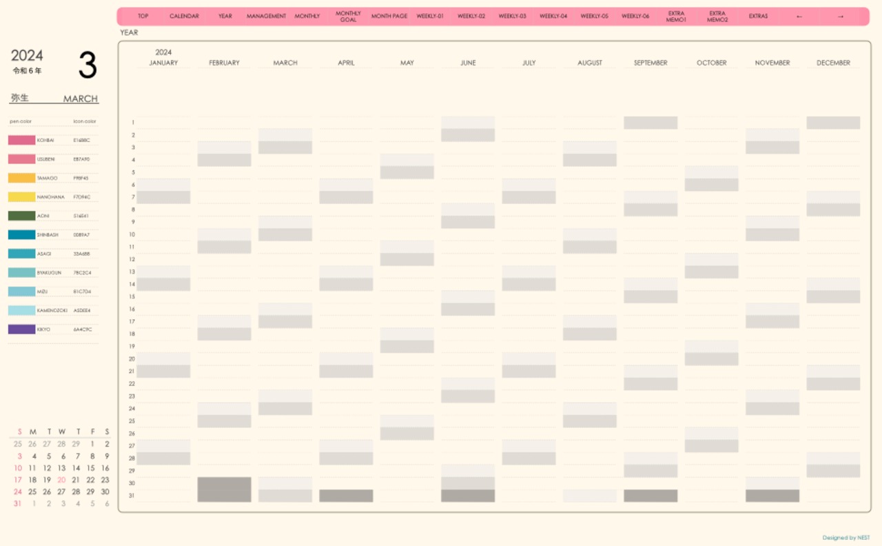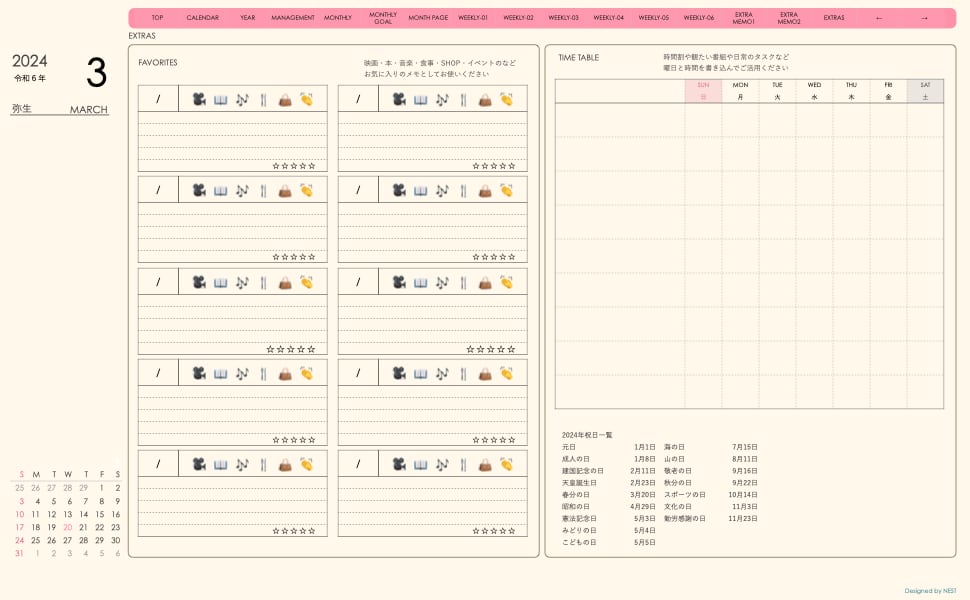 ・日本の祝日を表記(ミニカレンダーにも表記 **3月版から**)