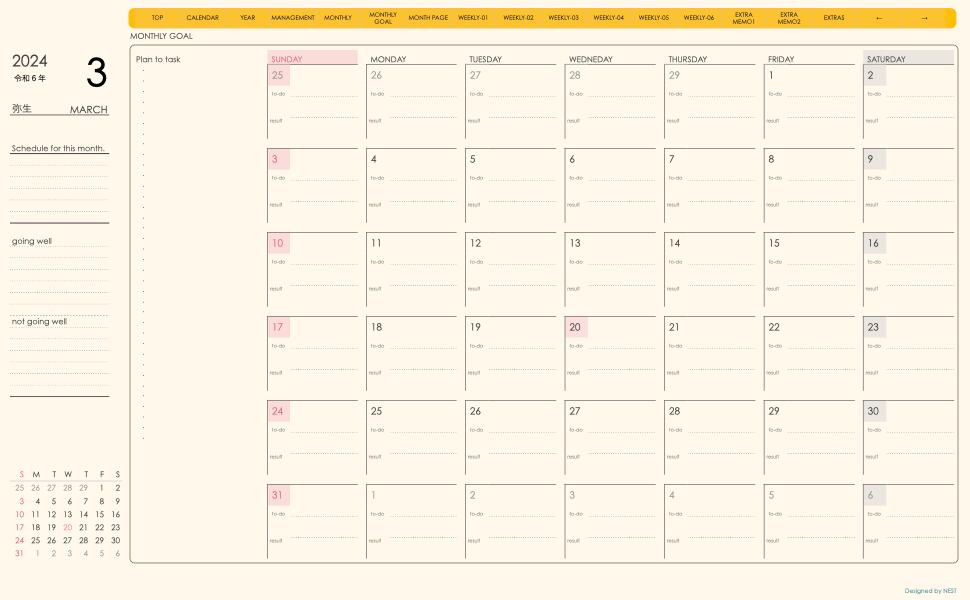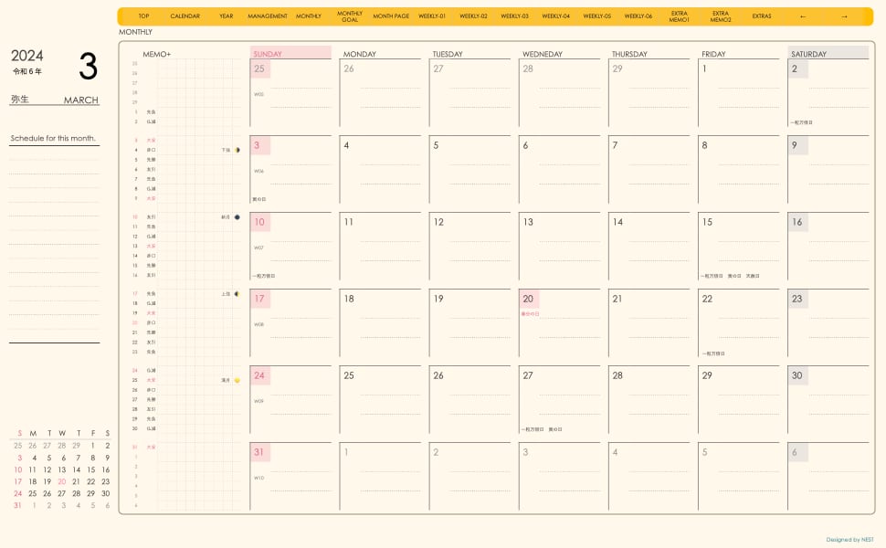 **(week-verticalシリーズ)日曜日始まり2024.03月版**が登場!