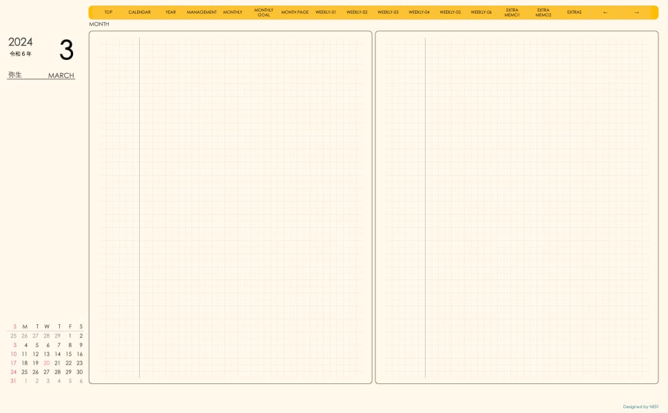 予定の把握と その日のメモの両方が使えるレイアウトとなっていて
