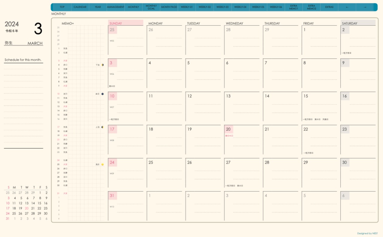 ・日本の祝日を表記(ミニカレンダーにも表記 **3月版から**)