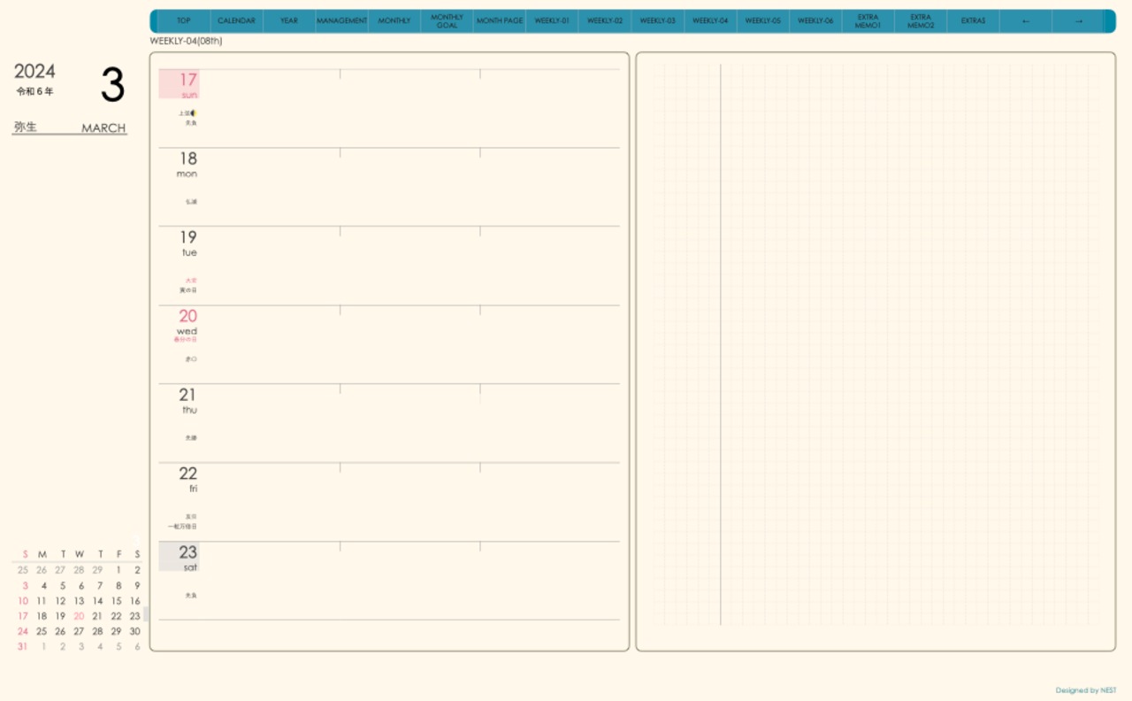 **week-leftシリーズ日曜日始まり2024年03月版**の登場!