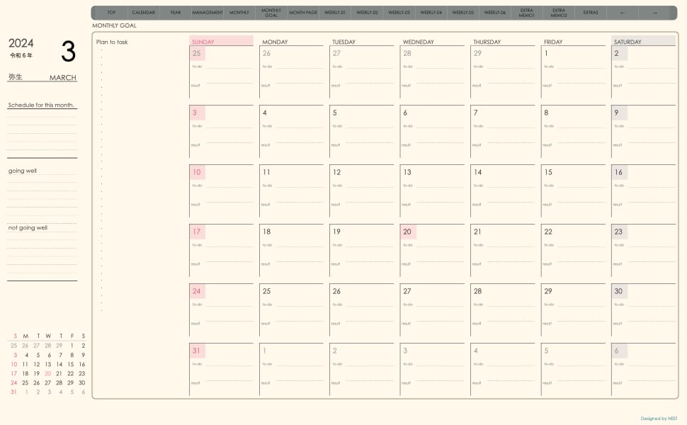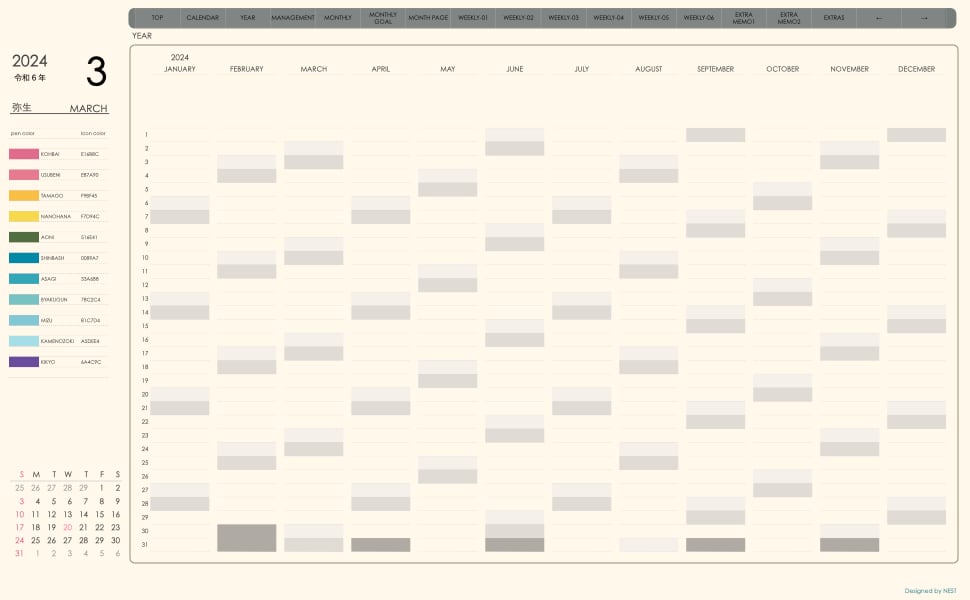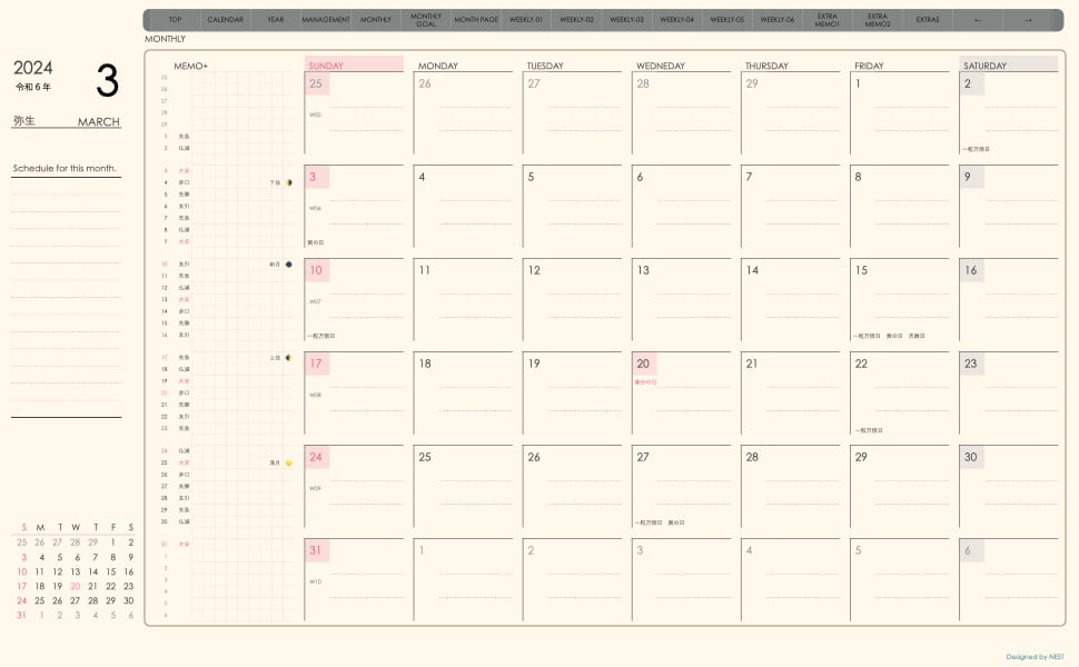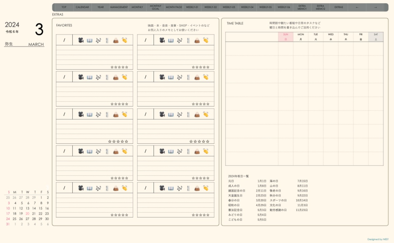 ・日本の祝日を表記(ミニカレンダーにも表記 **3月版から**)