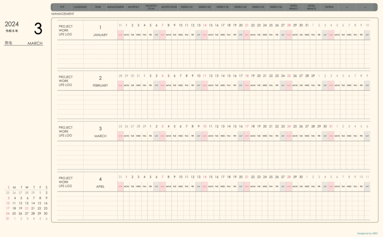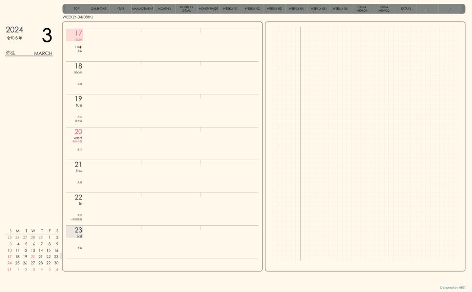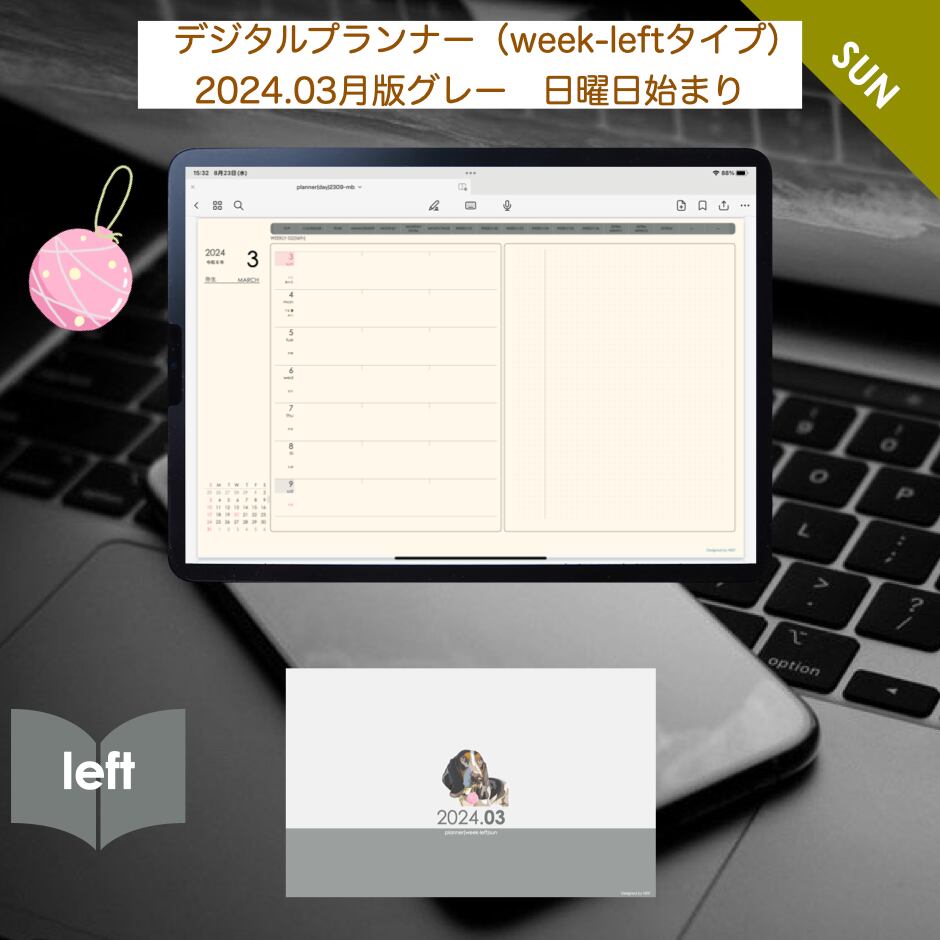 **week-leftシリーズ日曜日始まり2024年03月版**の登場!