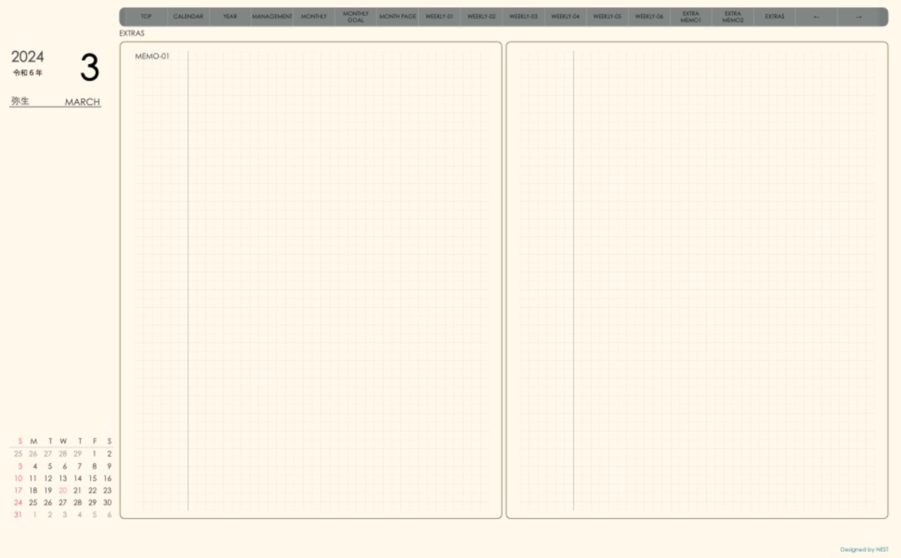 予定の把握とメモの両方が使えるレイアウトとなっています。