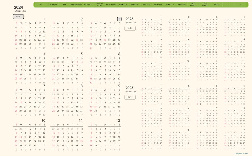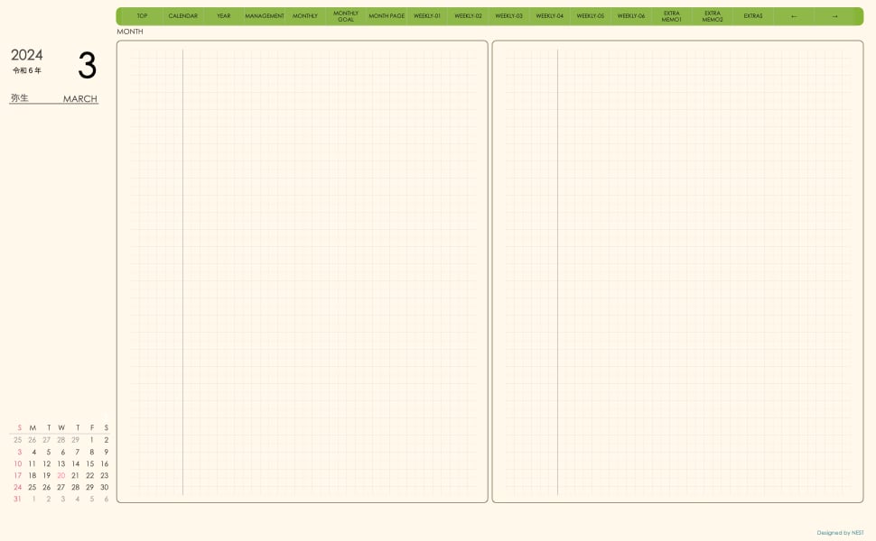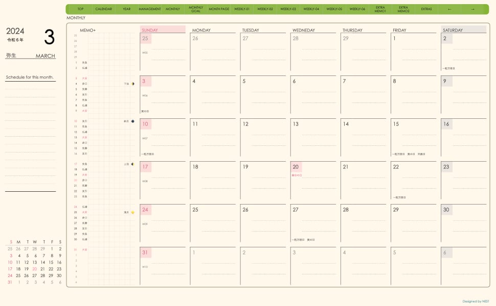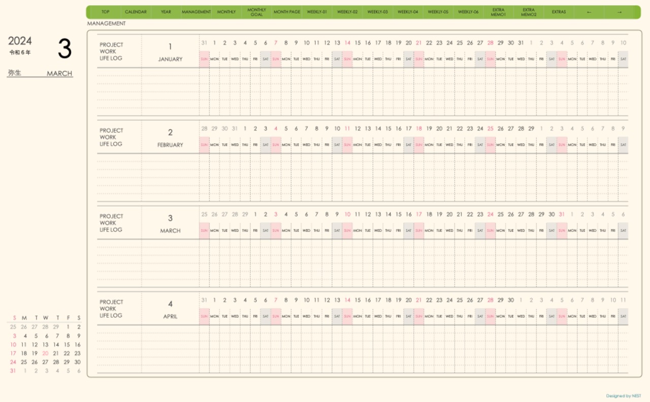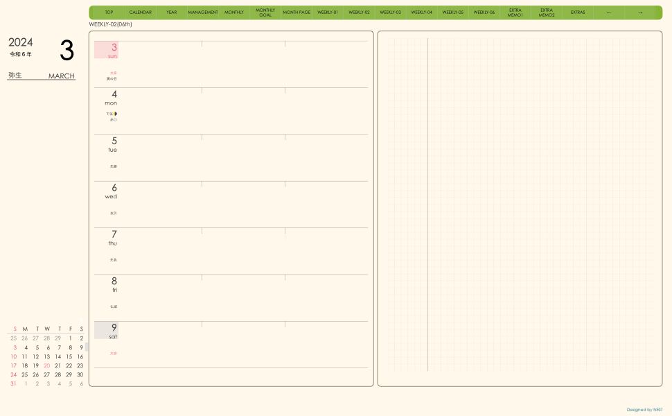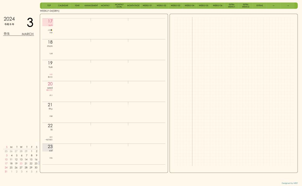 **week-leftシリーズ日曜日始まり2024年03月版**の登場!