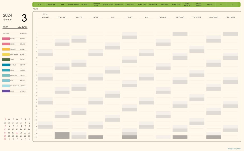 ・日本の祝日を表記(ミニカレンダーにも表記 **3月版から**)