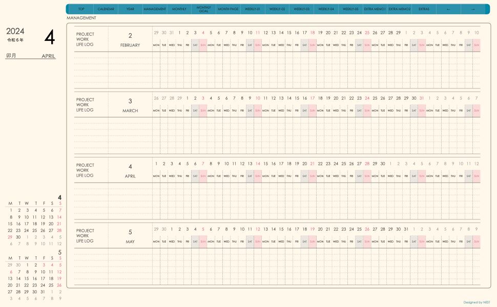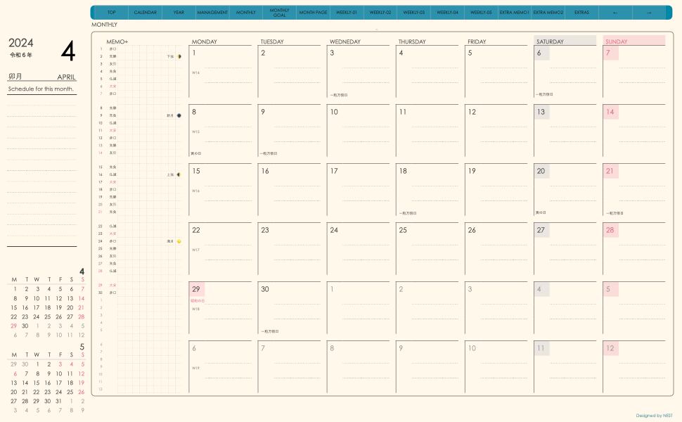 **(week-verticalシリーズ)月曜日始まり2024.04月版**が登場!