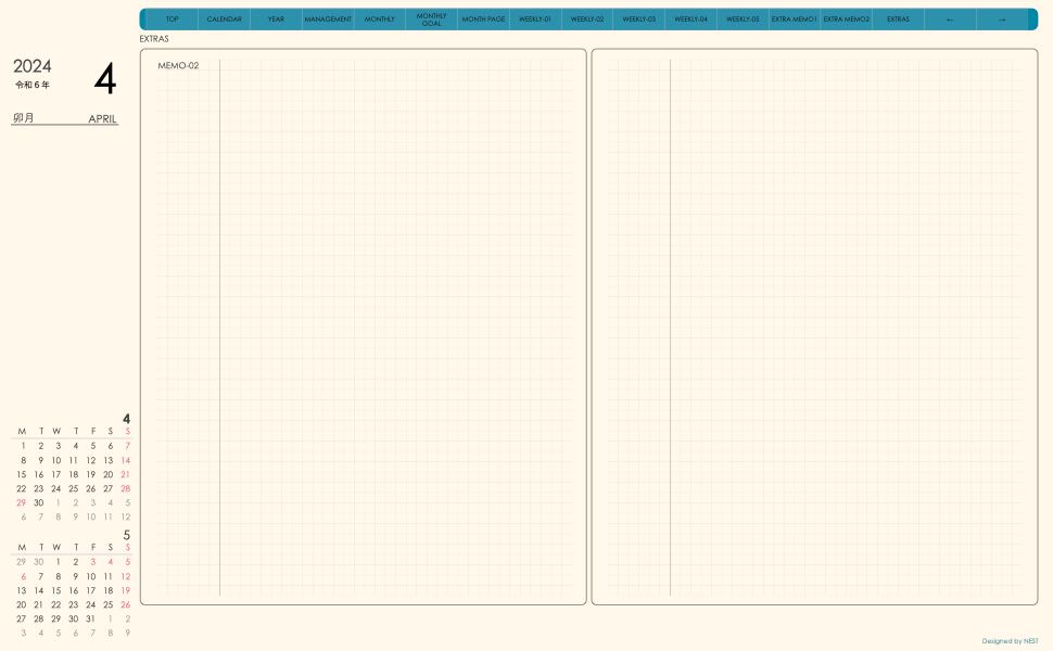 予定の把握と その日のメモの両方が使えるレイアウトとなっていて